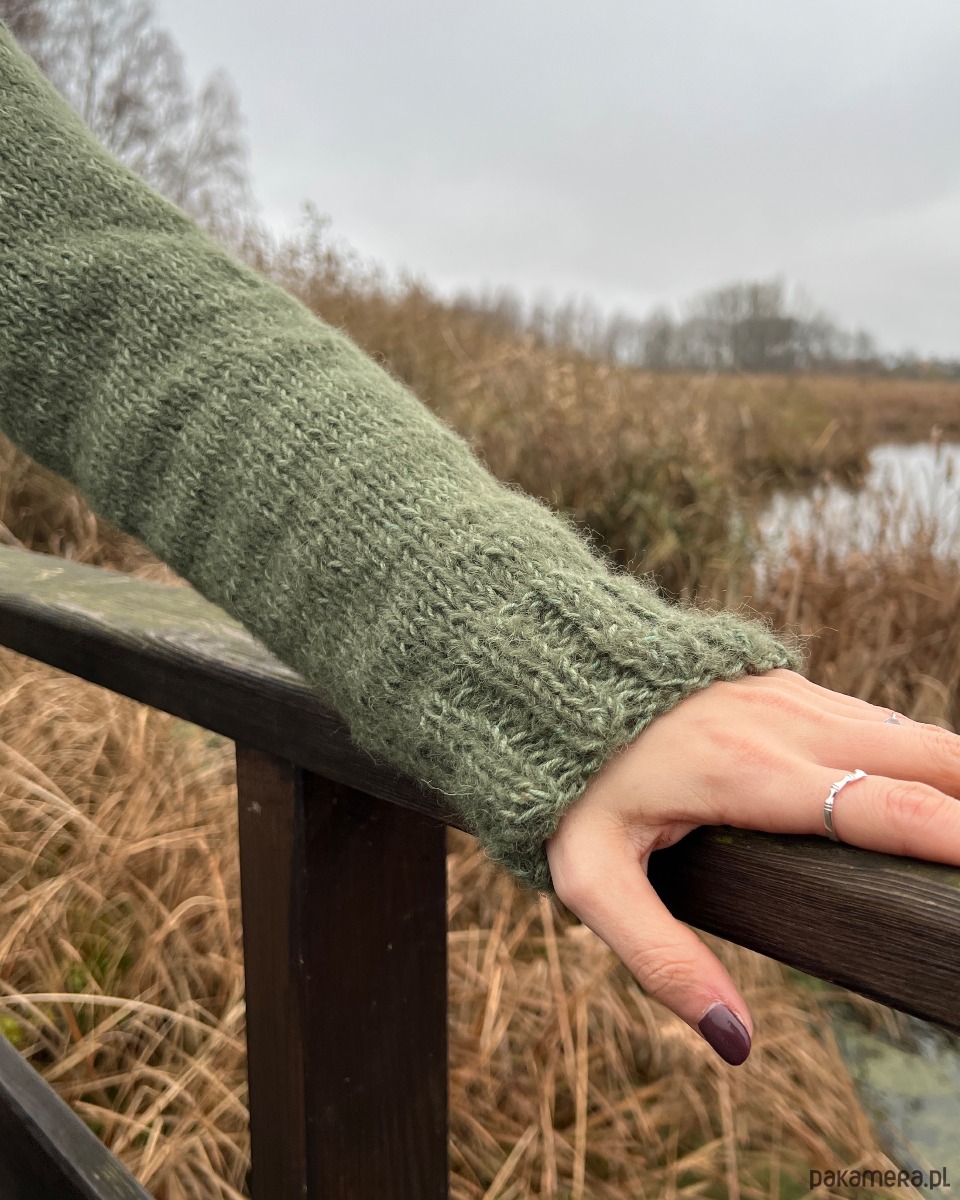 Sweter DITA - oliwkowy - merino / alpaka / jedwab - handmade - XS/S