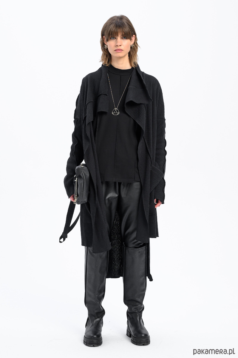 Możliwość związania swetra dzianinowym paskiem, pozwala na dowolność stylizacji