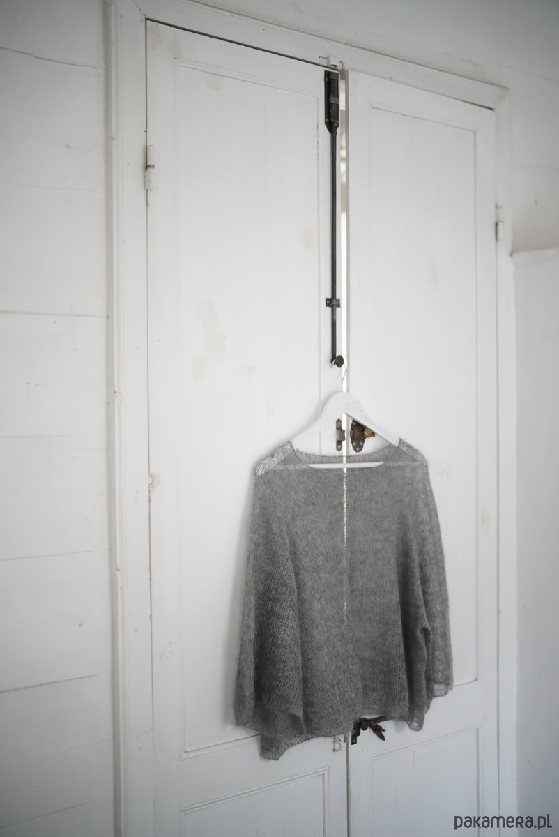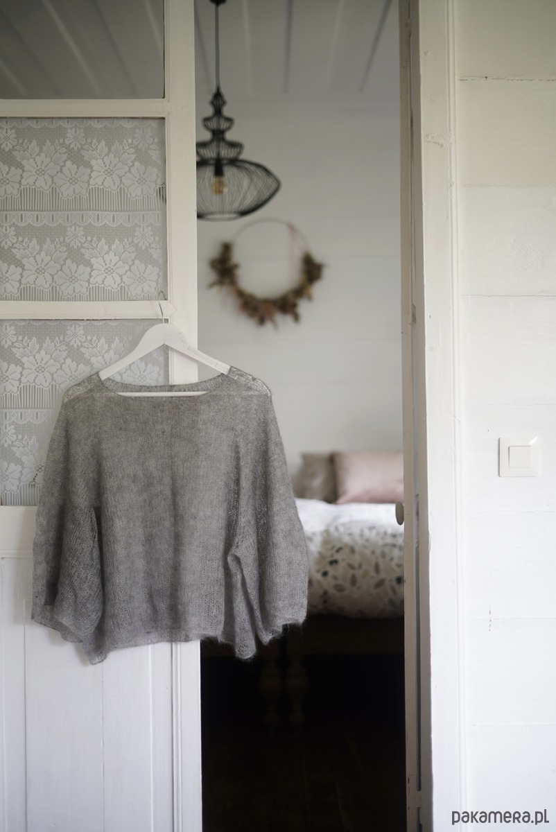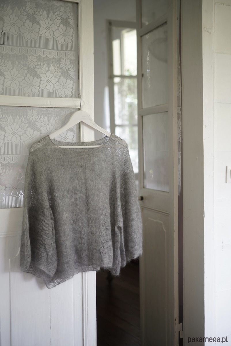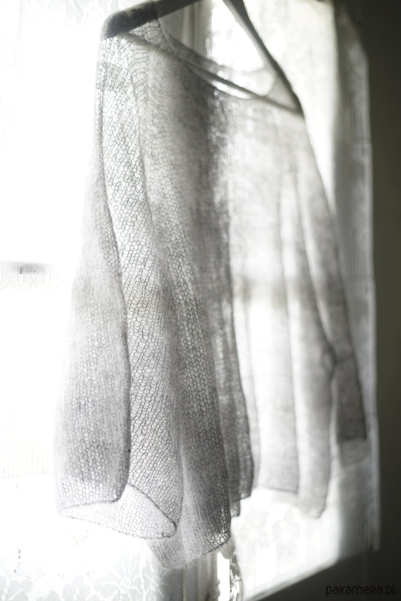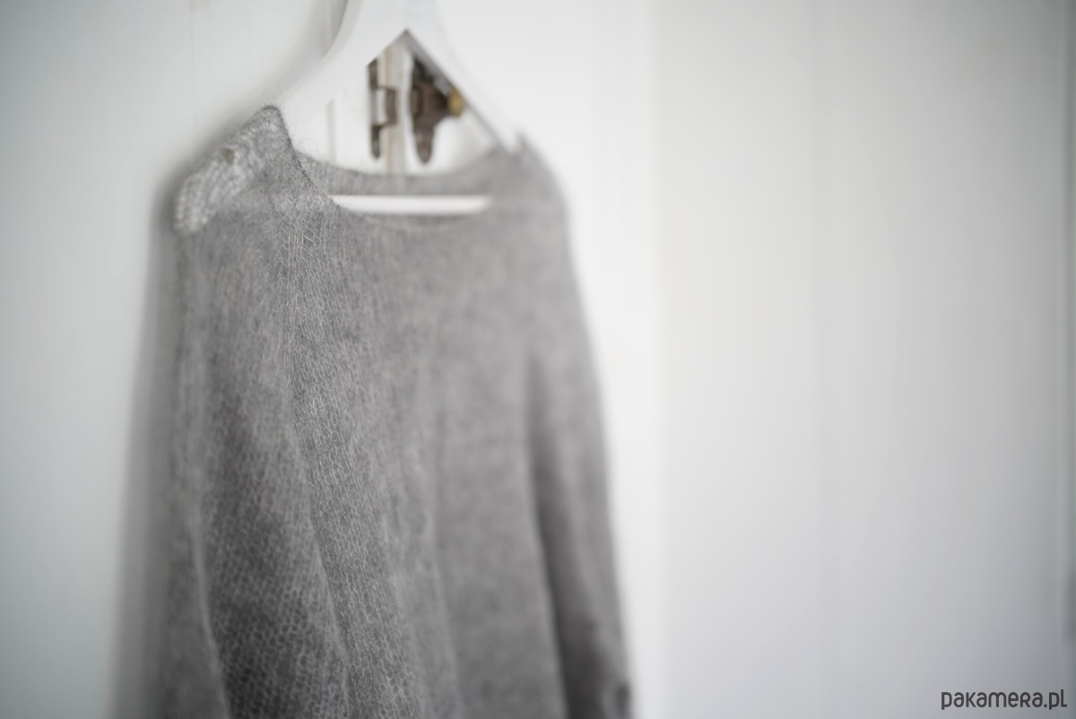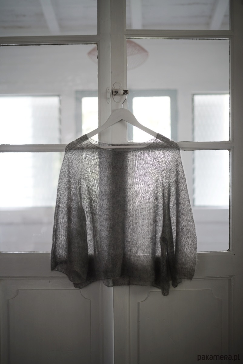 Moherów jedwabny, delikatny, półprzezroczysty i lekki jak powietrze sweter w kolorze srebrzystej szarości. Mój ukochany, jest jak mgła, którą się otulasz. Jednocześnie jest bardzo wytrzymały, był ze mną już w 5 podróżach, w górach , tropikach, wietrznych wyspach.