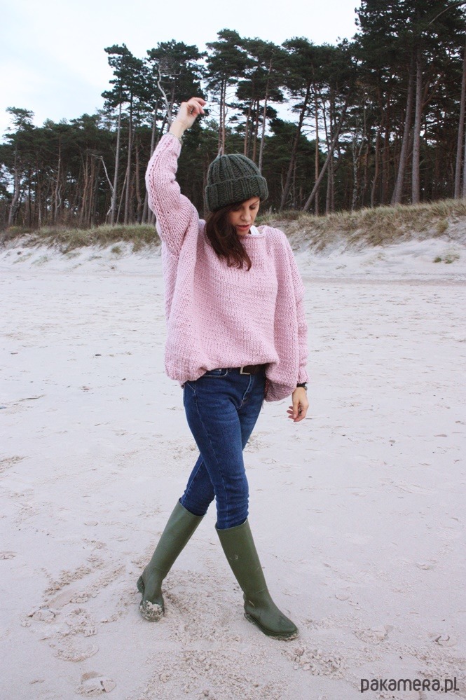 Ręcznie wykonany sweter, kolor pudrowy róż.