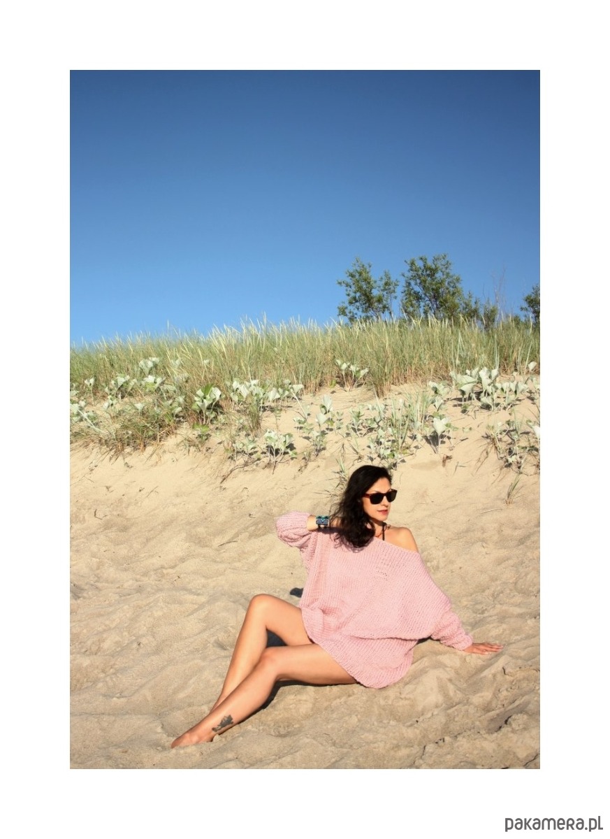 Ręcznie wykonany sweter, kolor pudrowy róż.