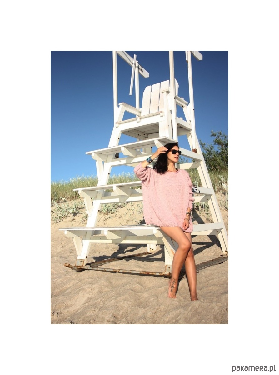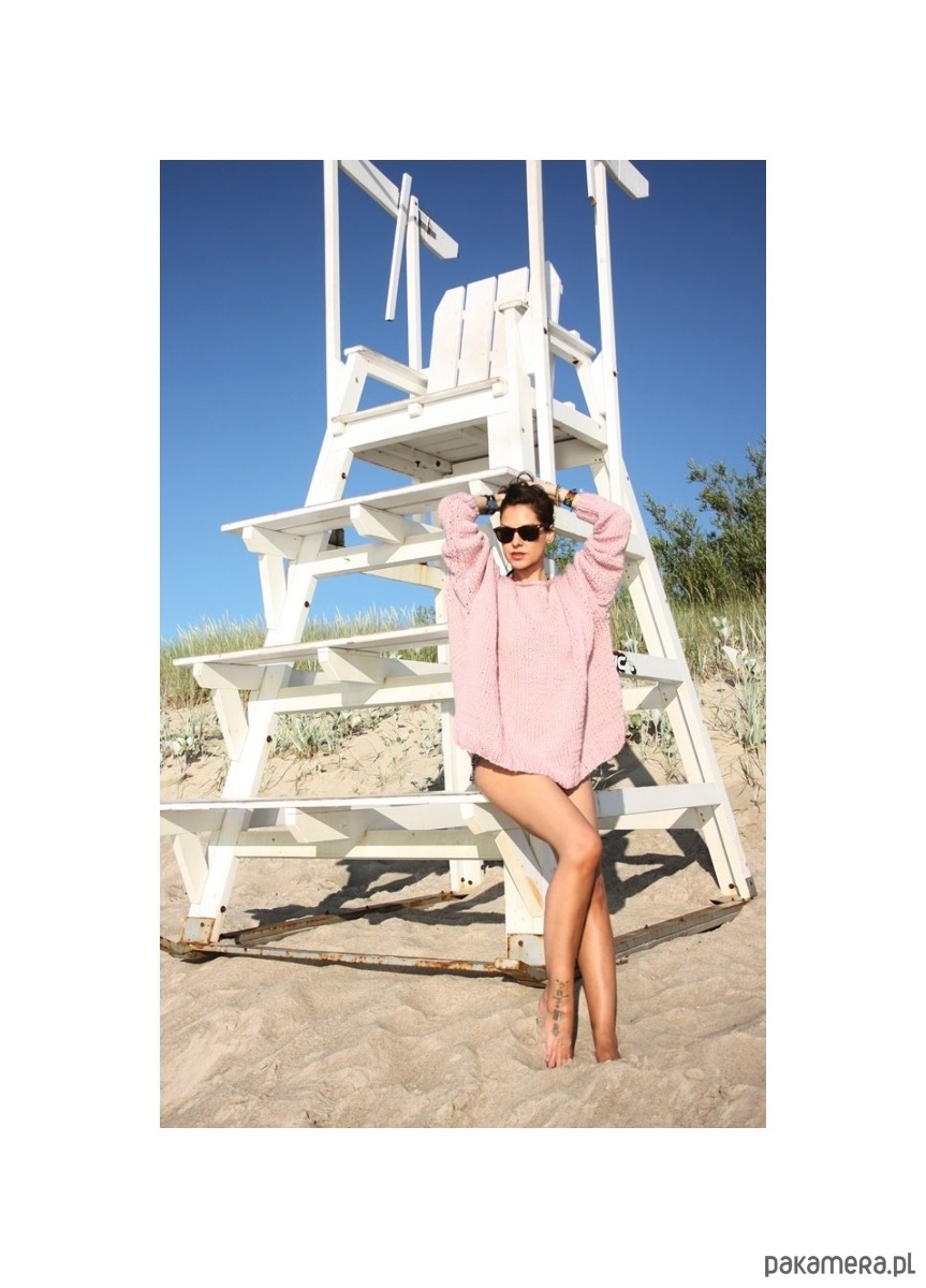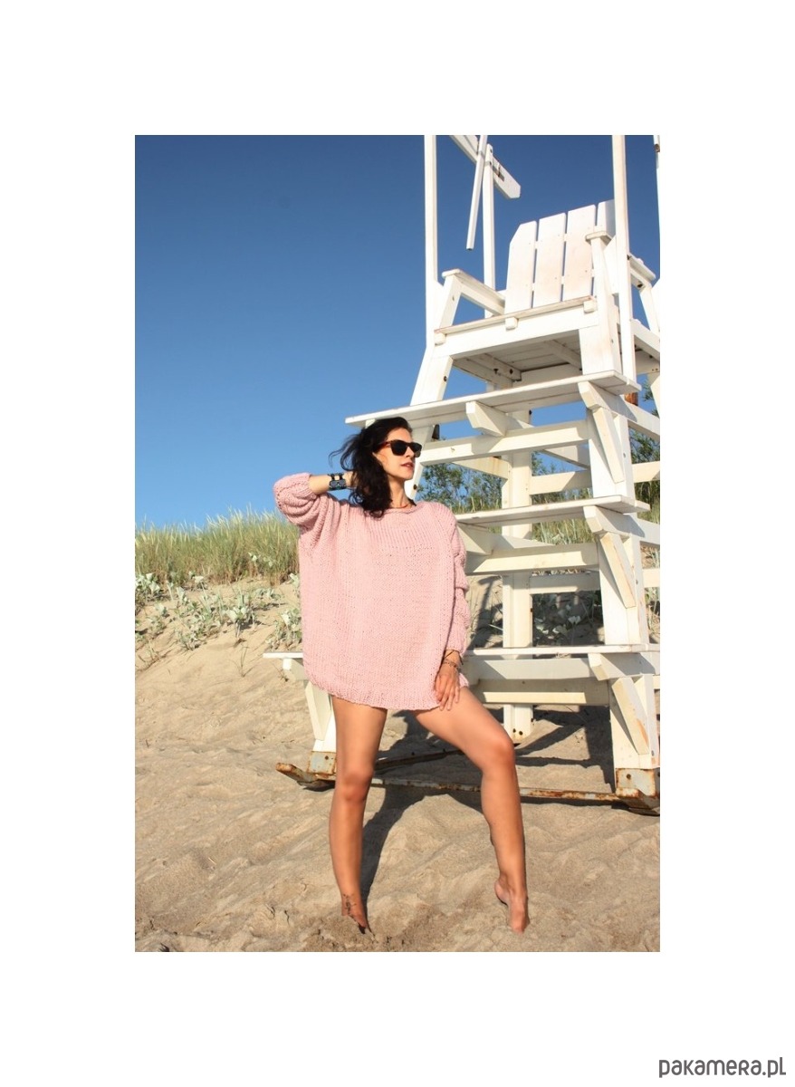 Sweter handmade oversize z wełną pudrowy róż