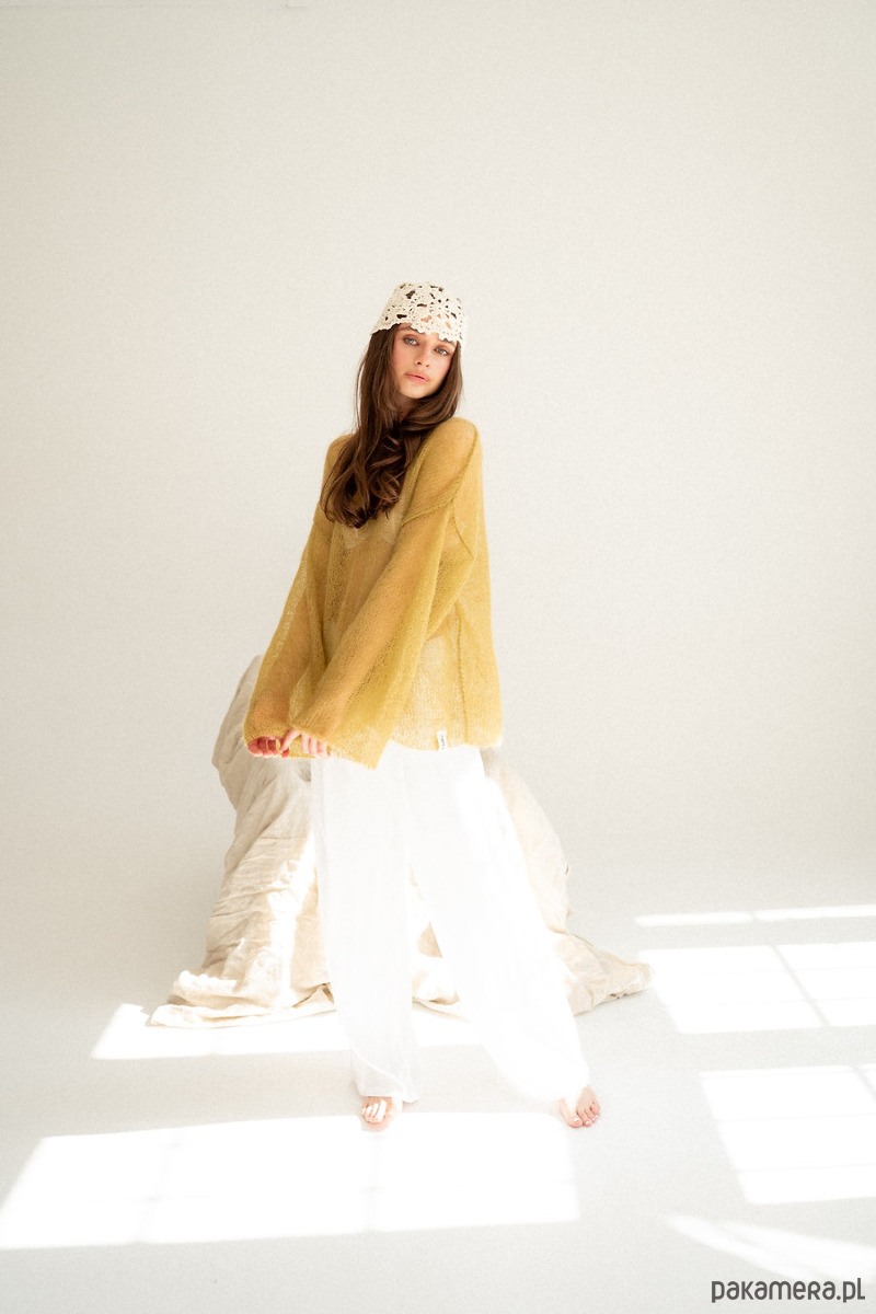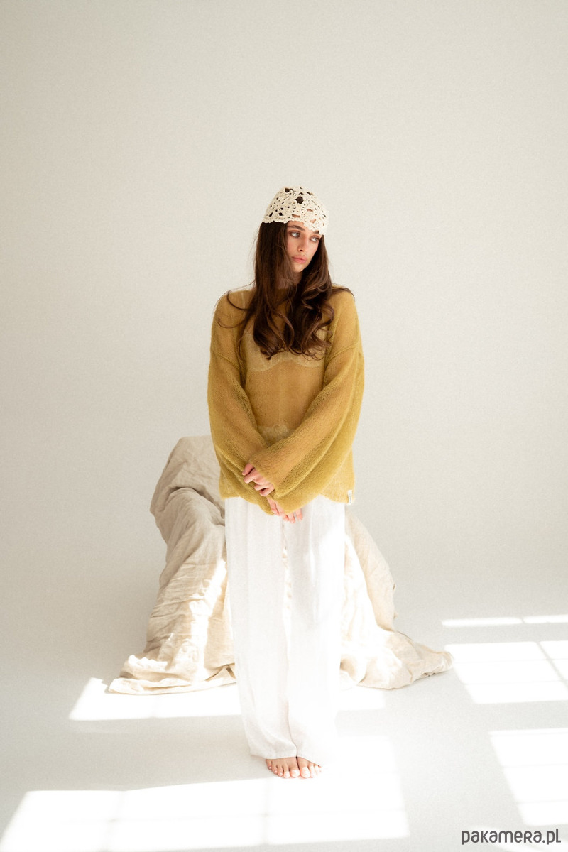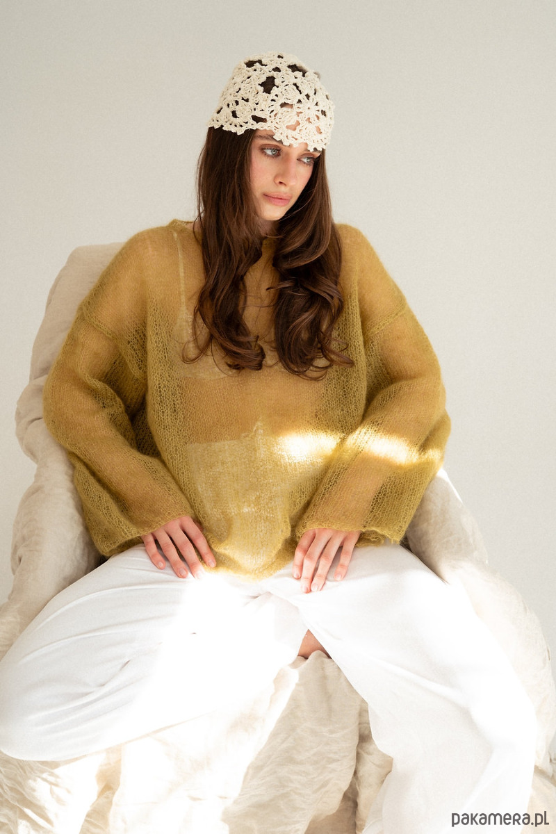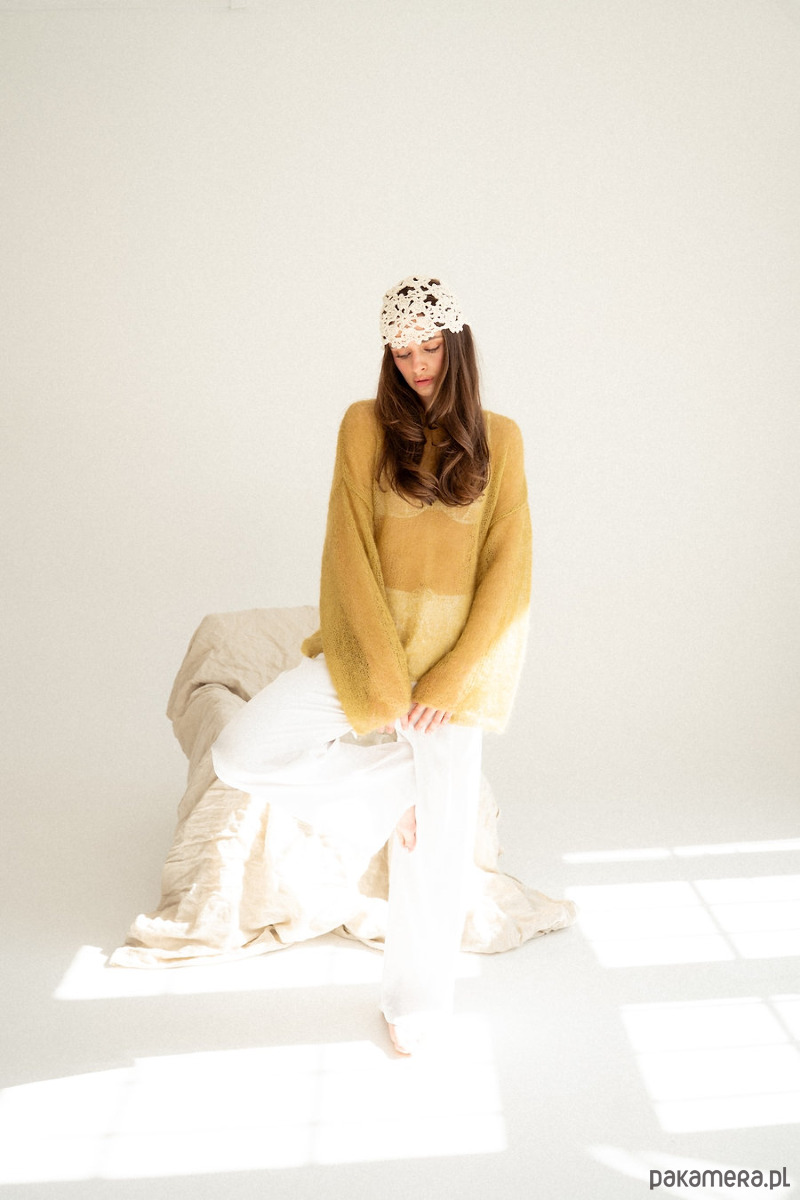 Sweter Lucia to powiew lata. Mgiełka która doda lekkości i kobiecości. Wydziergana z delikatnego moheru z jedwabiem. Załóż ją na koronkowy stanik, delikatny top bądź koszule. Ten sweter pokochasz za cudowny prosty krój i szerokie rękawy,