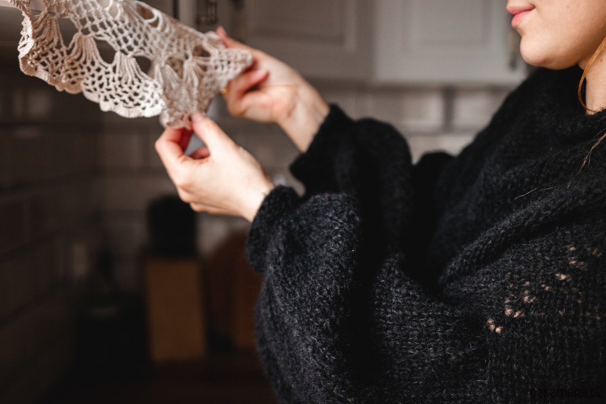 Sweter na drutach, sweter z szerokimi rękawami, sweter z alpaki