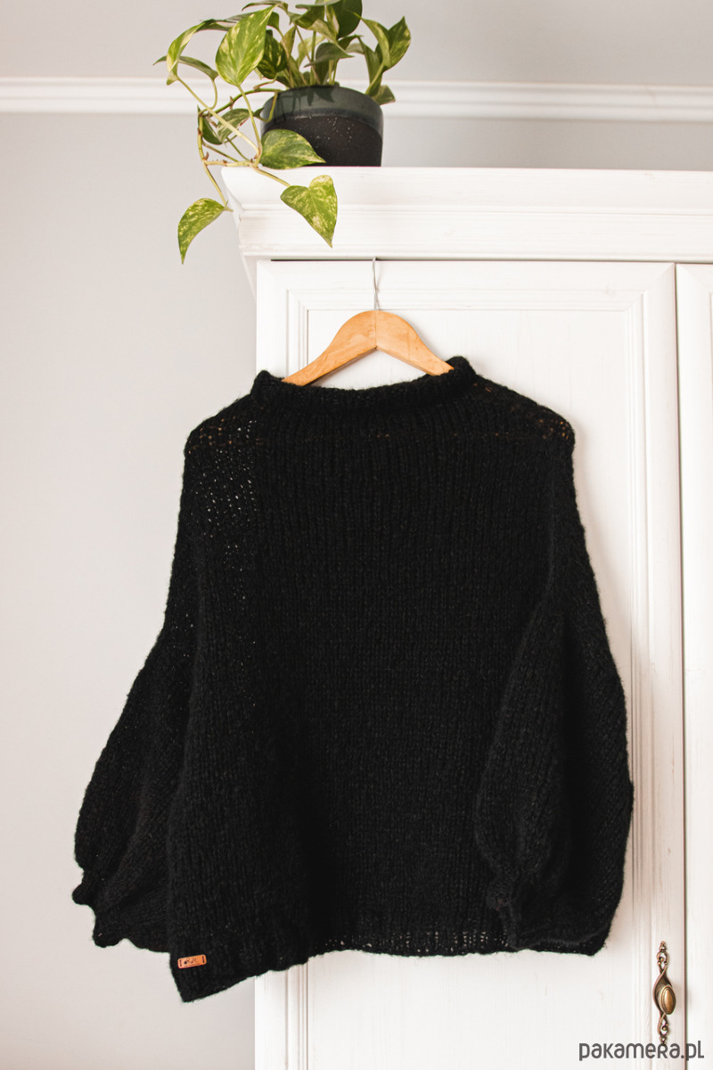 Model Emma charakteryzuje się stójką, obniżoną linią ramion i szerokimi, balonowymi rękawami. Świetnie wygląda w połączeniu z dżinsami, eleganckimi spodniami czy spódnicą. Idealny na jesienne chłody i zimowe mrozy! Ta leciutka chmurka, za sprawą alpaki, potrafi świetnie trzymać ciepło.
