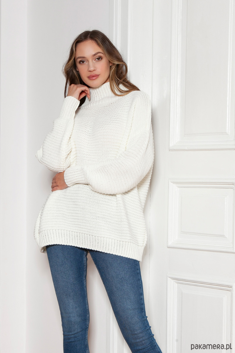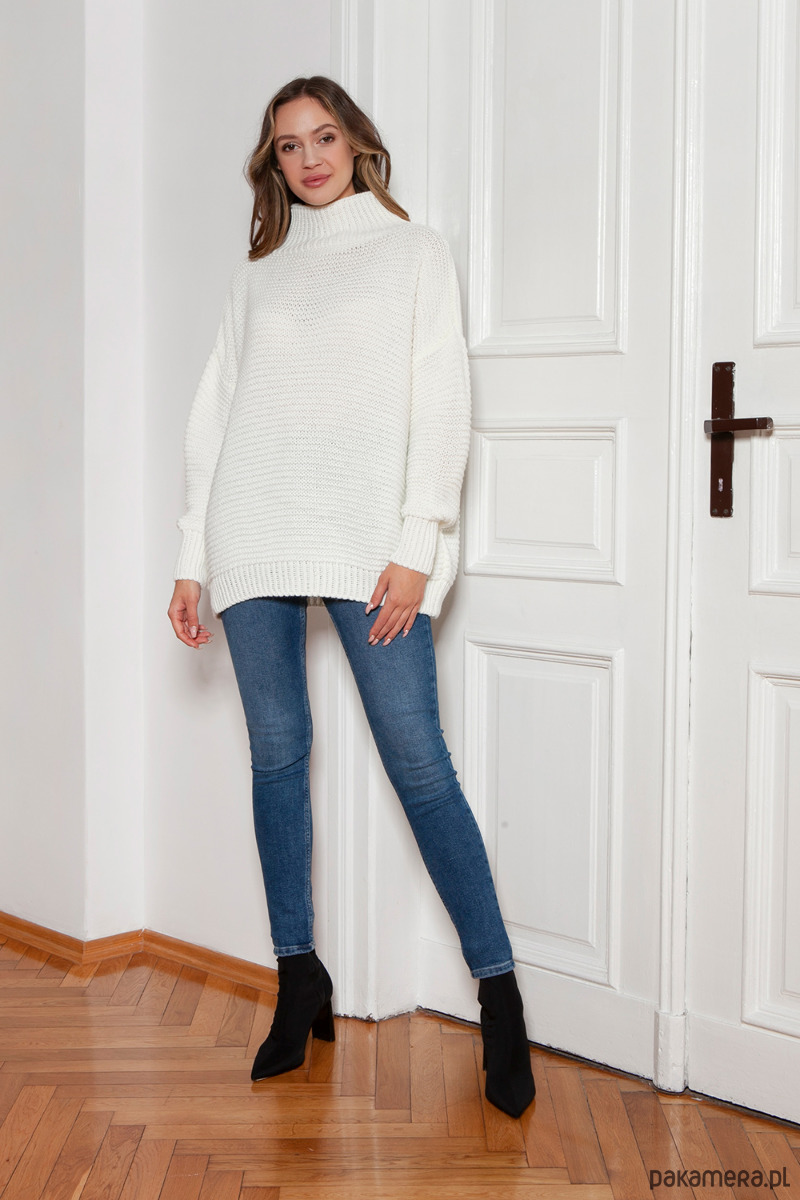 Sweter oversize z golfem - SWE148 ecru