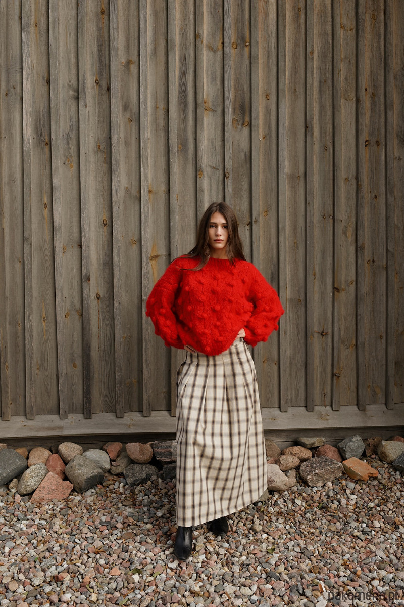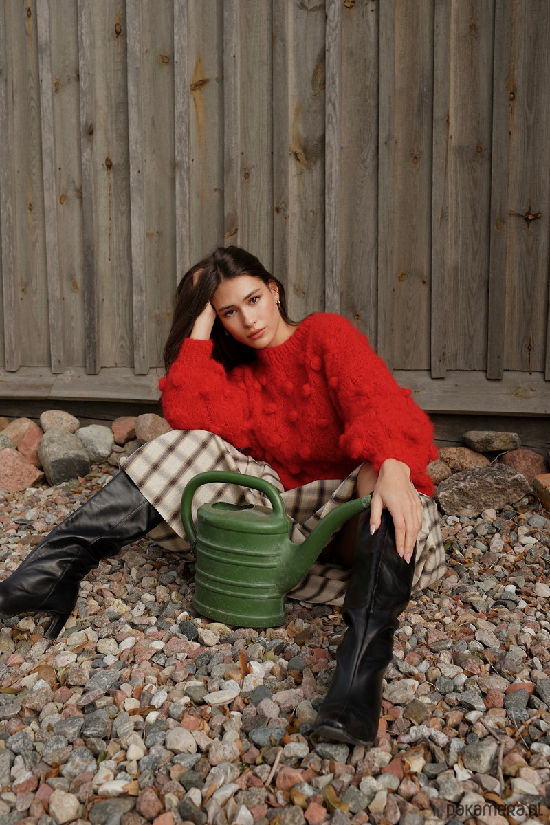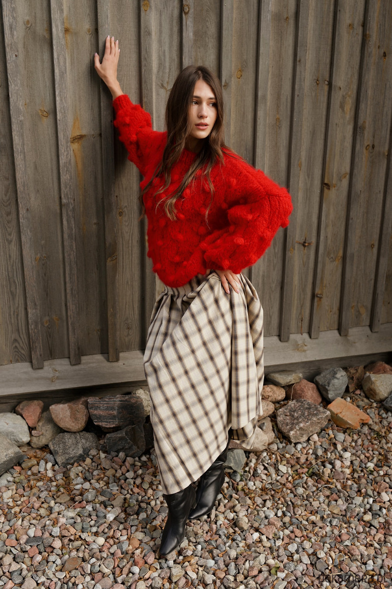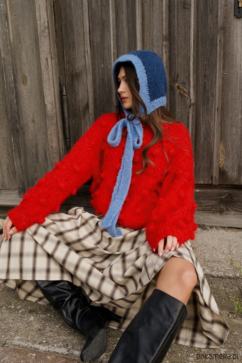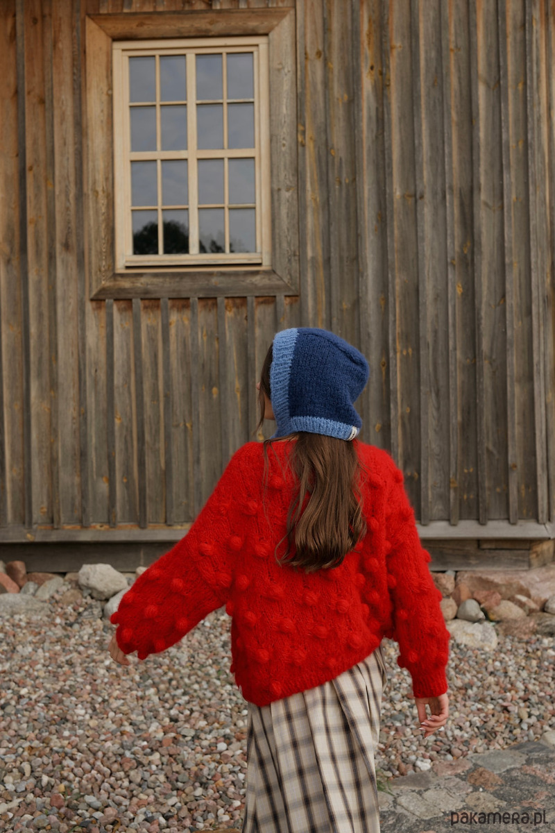 Sweter Roza to puszysta chmurka w piękny wzór kłosów z dużymi bąblami. Baloniasta forma, która świetnie sprawdzi się do jeansów/spodni czy spódnic z wysokim stanem i szerokie rękawy które kochacie. Miękkość, puszystość i cudowna faktura to wszystko sprawia, że będziesz czuła się w nim wyjątkowo. Czerwień jest niezwykle magnetyczna ale oczywiście wybór kolorów jest duży i to Ty zdecydujesz który skradnie Ci serce!