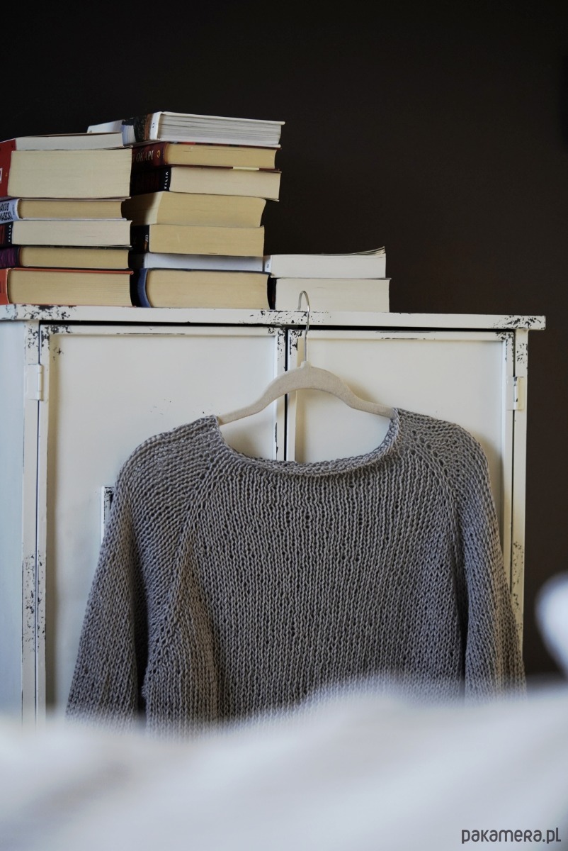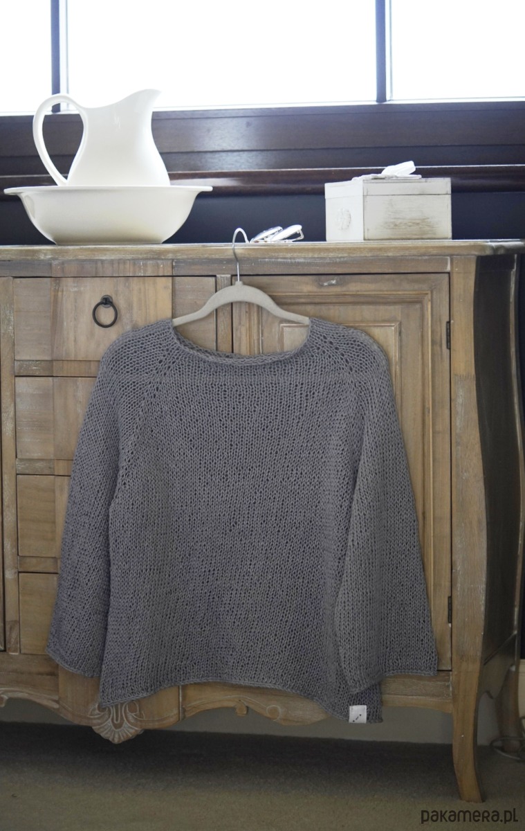 Ręcznie zrobiony na drutach sweter z bawełny i lnu. Sweter będący naturą w czystej postaci.