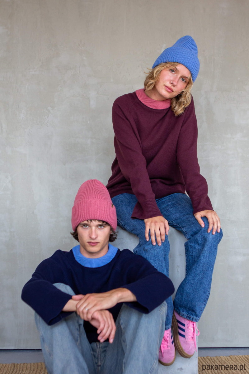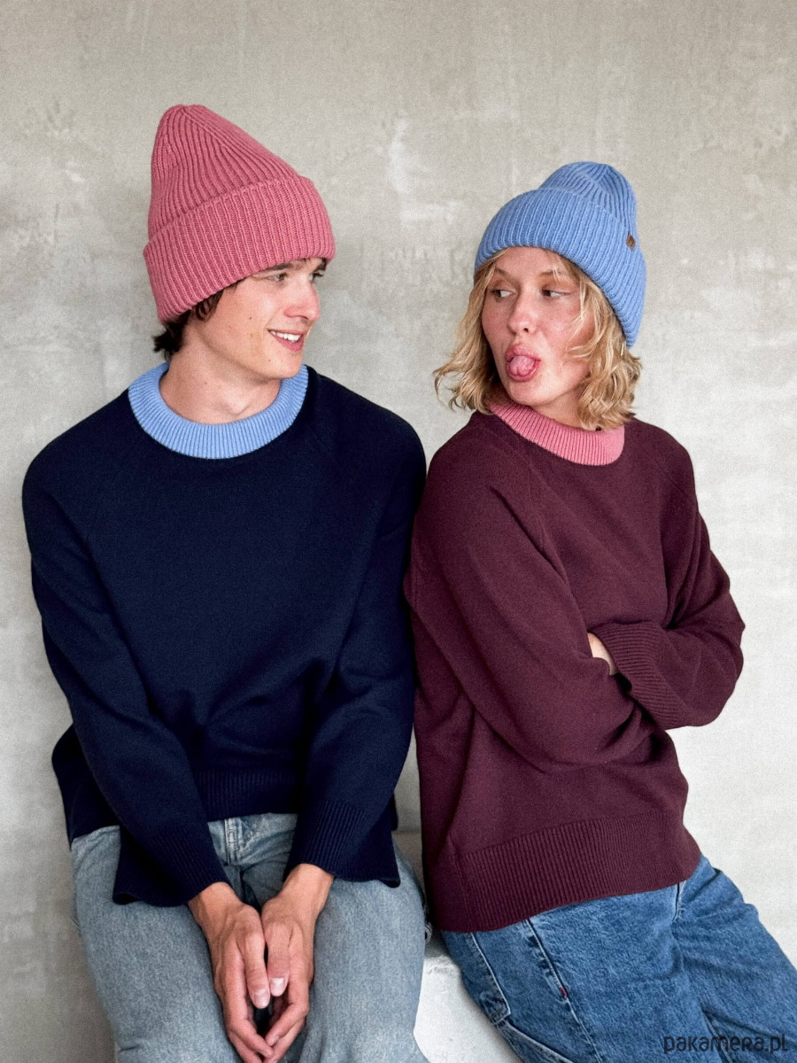 Zaprojektowałyśmy go tak, żeby towarzyszył Ci zarówno przy ognisku, na ganku w Bieszczadach, ale też randce w mieście, pracy, kinie czy kanapie w domu. Jest minimalistyczny, ale stylowy, bo z oryginalnym akcentem w postaci prążkowanego kołnierzyka w wyróżniającym się kolorze.