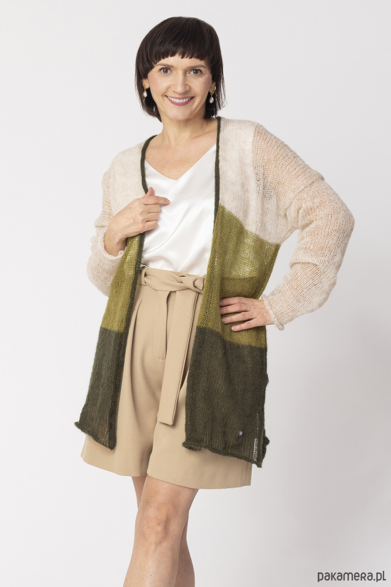 Sweter wełniany w pasy - kardigan damski Oliwkowy