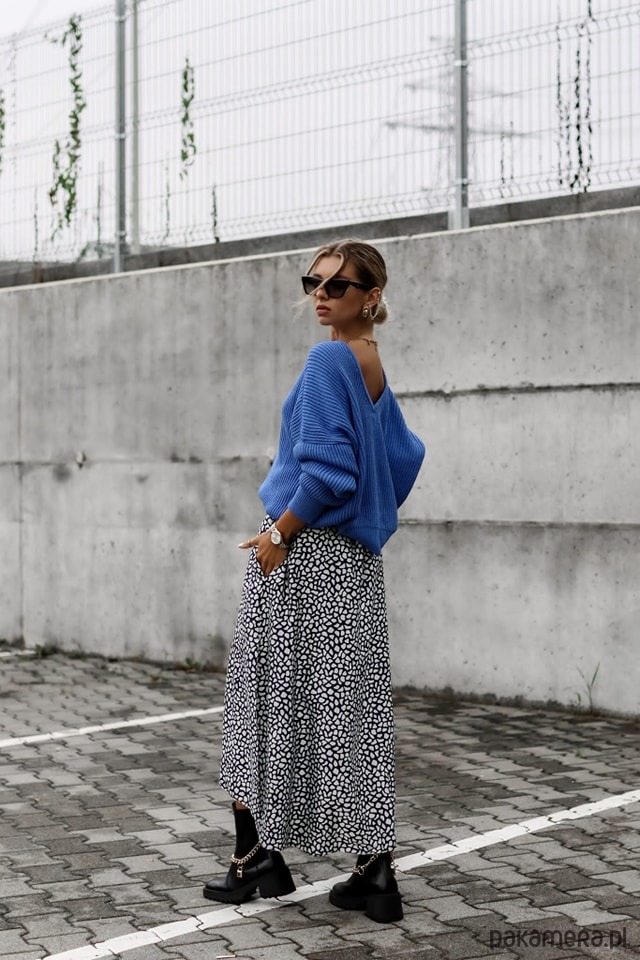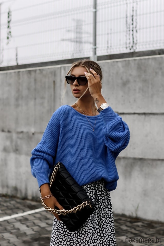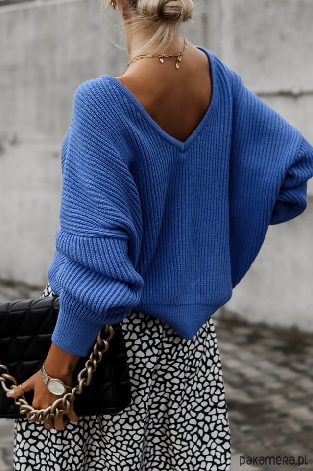 W tym swetrze, będziesz czuć się wyjątkowa. Obłędnie kobieca ! Niezwykle piękny Niebieski kolor i awangardowa, prążkowa struktura dopełni Twoją kobiecość.