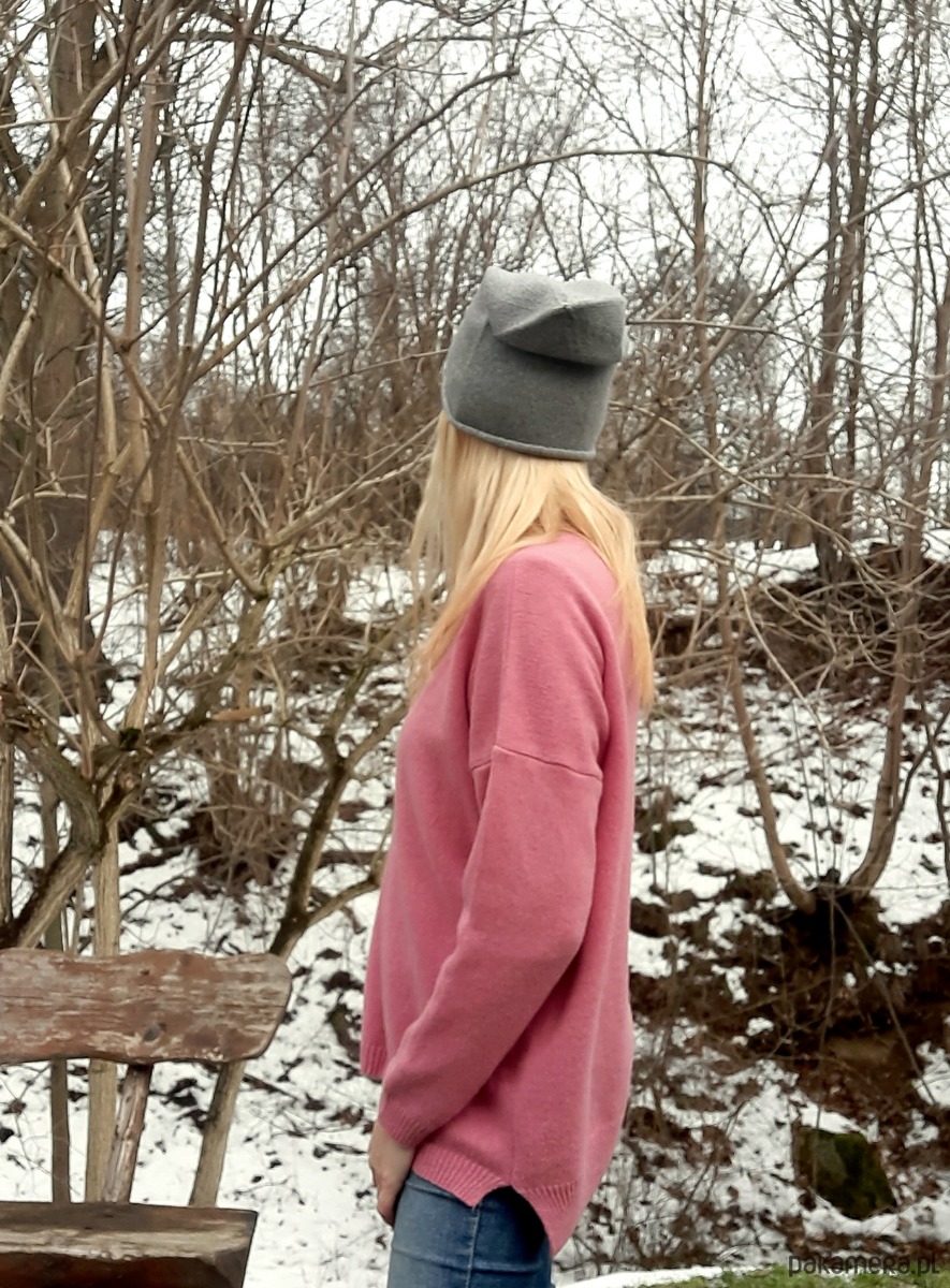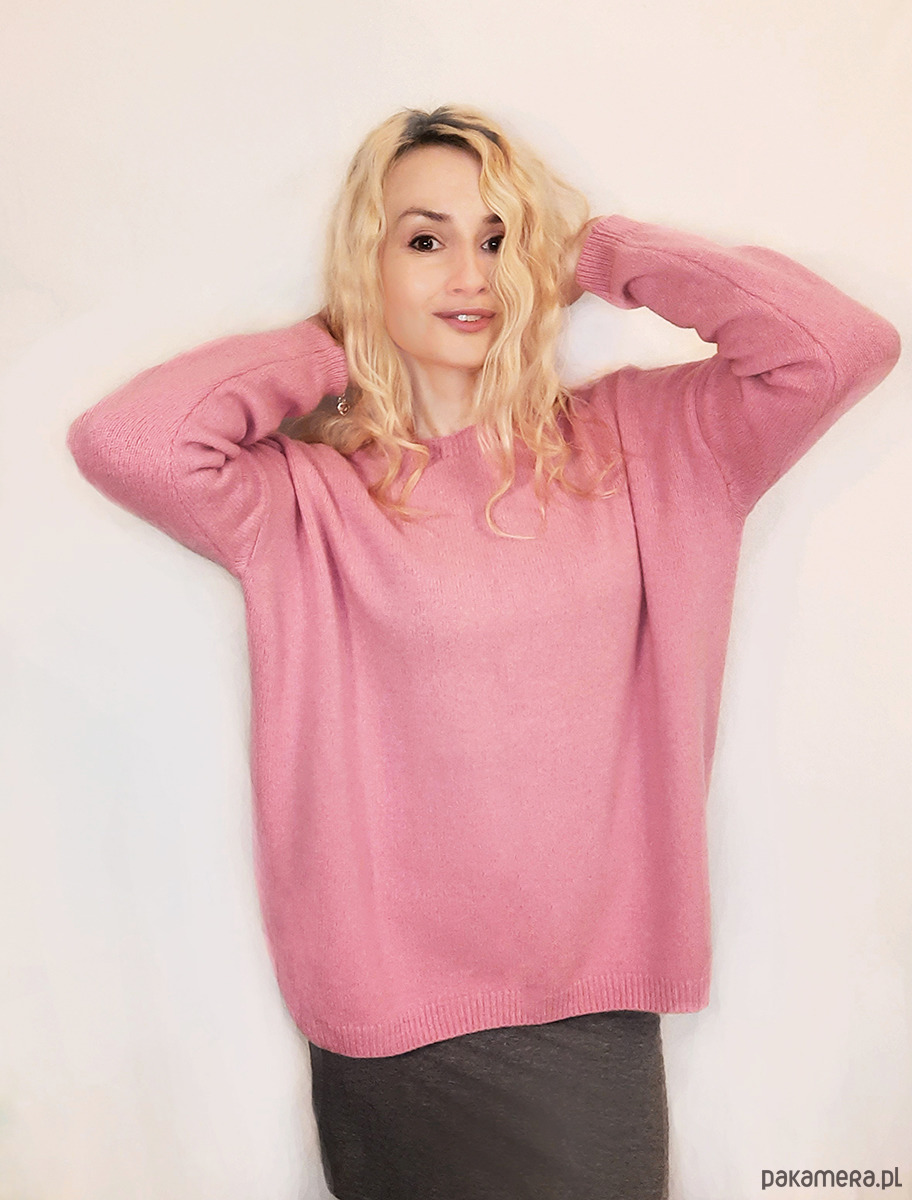 Kaszmirowy sweter-sweter z kaszmiru 100% różowy over size