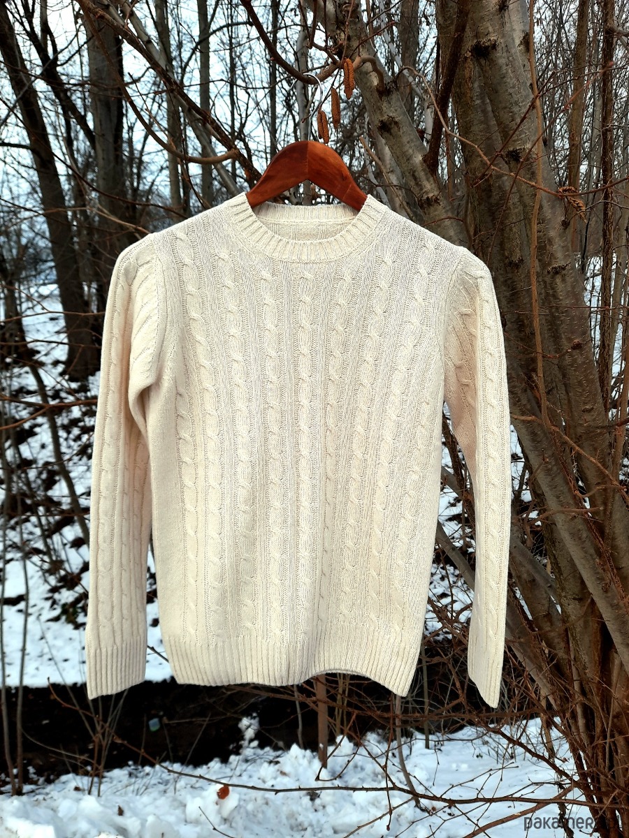 Kaszmirowy sweter-sweter z kaszmiru 100% ecru- śmietankowy- kość słoniową wzór w warkocz