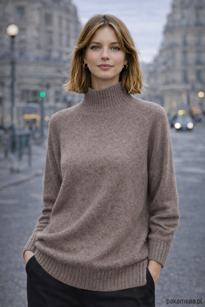 Miękki i ciepły sweter wykonany z wysokiej jakosci wełny i kaszmiru.
