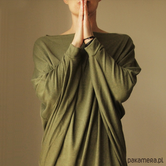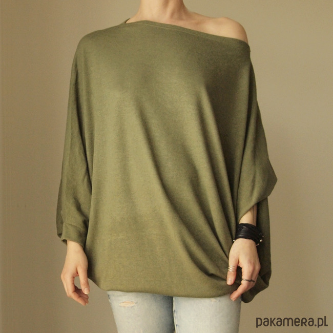 Styl oversize. Jeden rozmiar uniwersalny: szerokość od rękawa do rękawa mierzona na płasko: około 125cm, długość ok. 75cm.