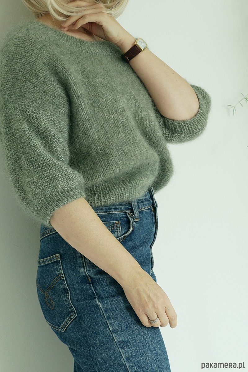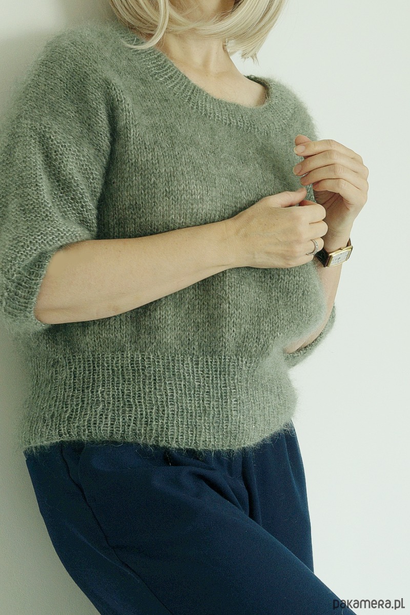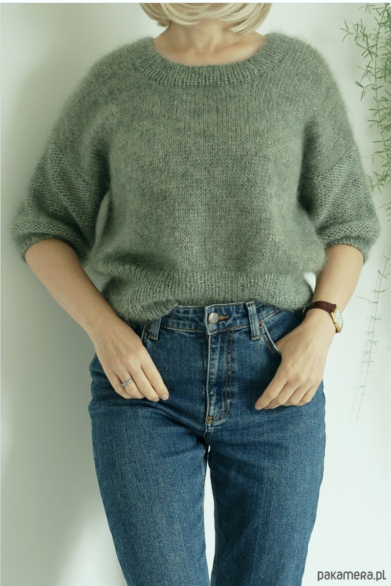 Lekki, miękki sweter wykonany ręcznie na drutach z doskonałej jakości włóczki.