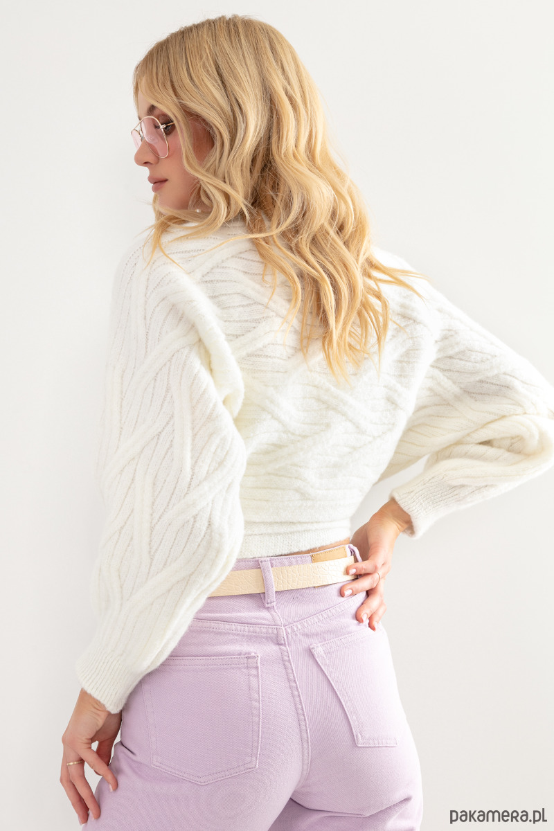 Ten sweterek to połączenie cudownej miękkości, wygody i koloru. Właśnie w tym modelu wprowadziliśmy nowy odcień różu - AshRose. My już go kochamy bo podkreśla cerę i brunetek i blondynek. Proponujemy Ci zatem wyjątkowo miękki sweterek, który możesz nosić na dwa sposoby - zawiązany w pasie jako krótki sweter, lub luźno - w formie kardigana. Dekolt kopertowy - układaj go jak lubisz, luźniej lub mocniej związany. Sweterek na szersze rękawki zakończone ściągaczami. Paski, którymi przewiązujesz sweter w pasie można regulować.