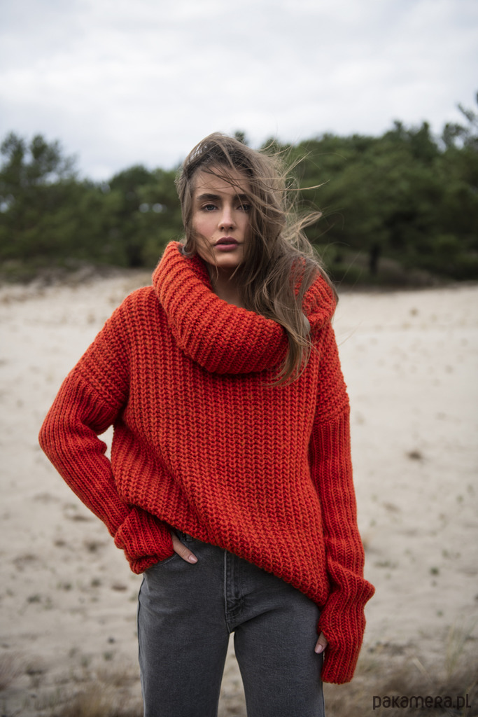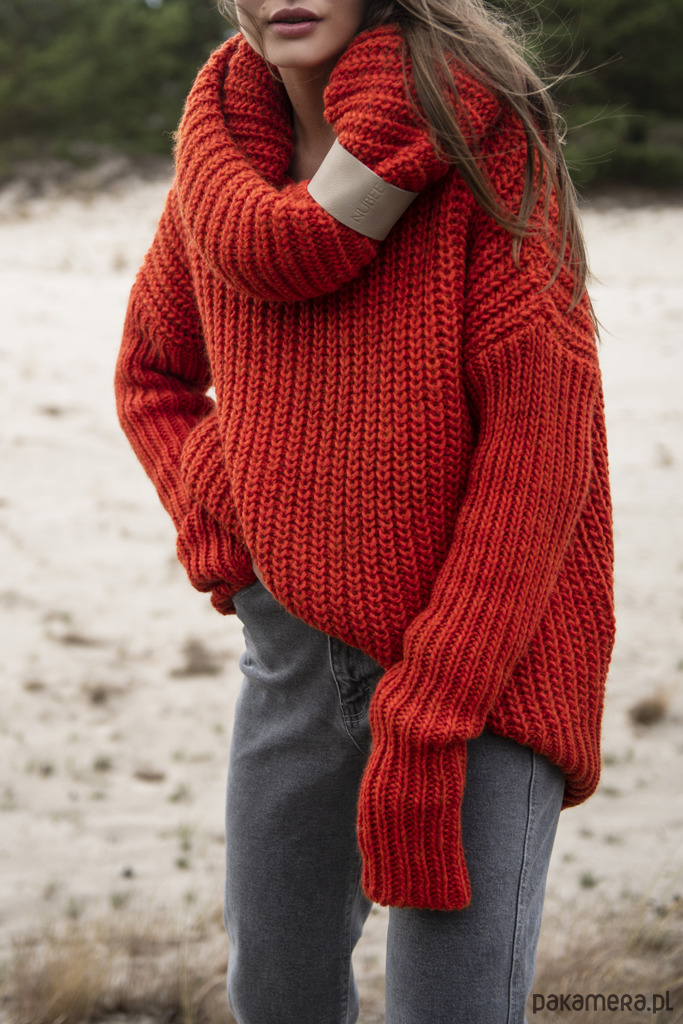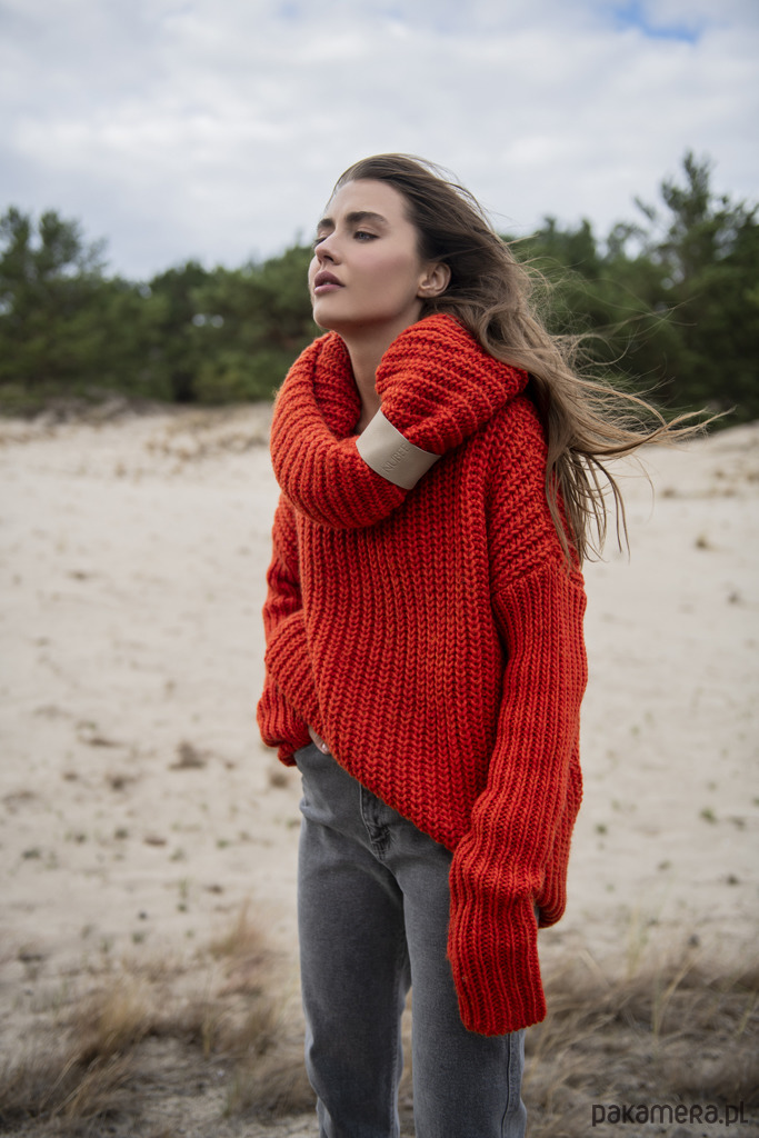 SWETER z kolekcji WOMEN OF WOOL wykonany z niezwykle miękkiej, przyjemnej w dotyku, bardzo ciepłej oraz wysokogatunkowej przędzy o grubym splocie.