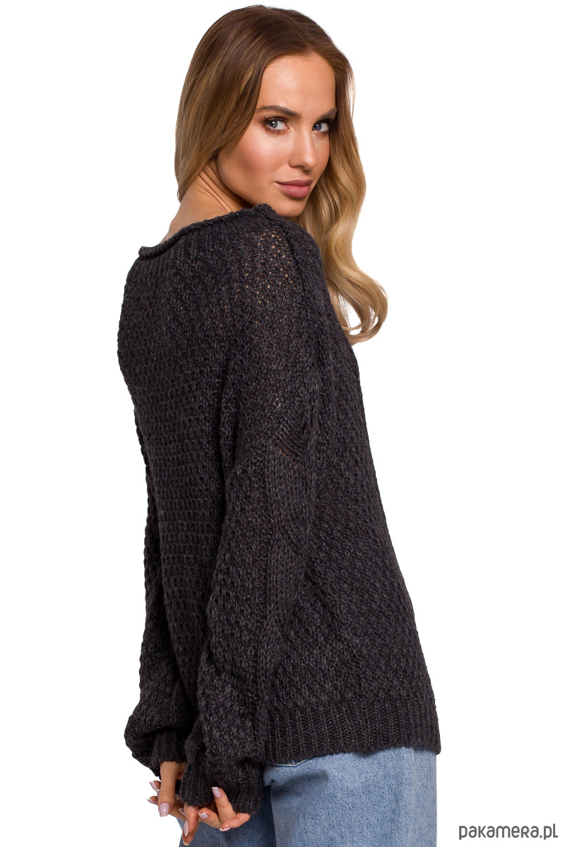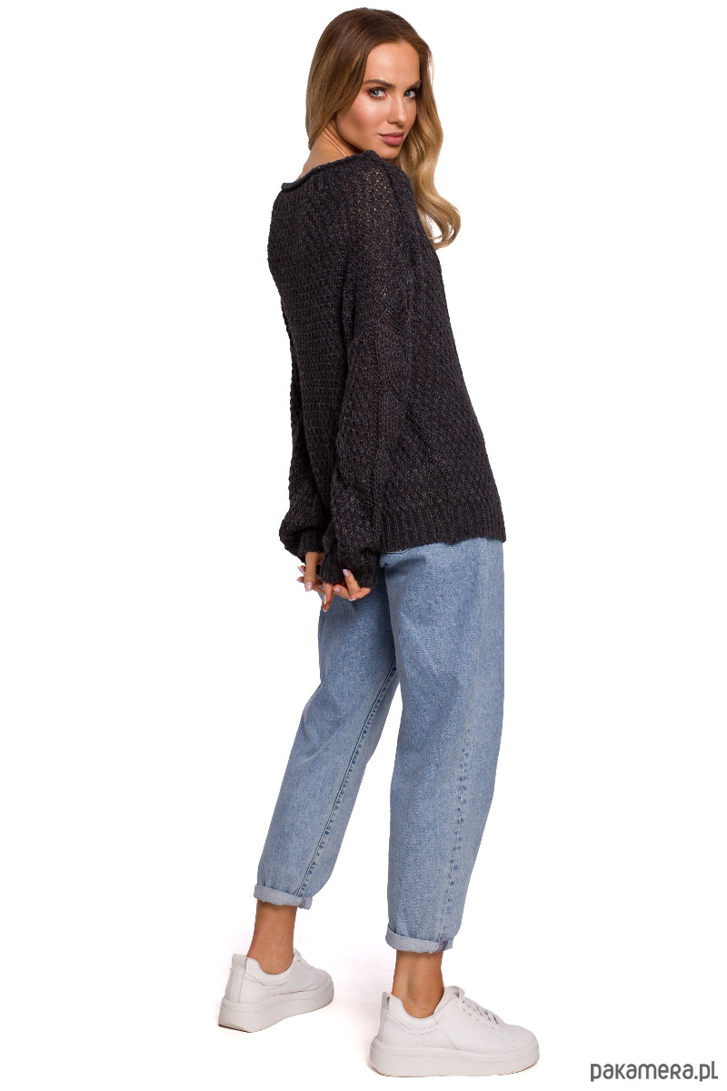 Niezwykle kobiecy, ażurowy sweter dodatkowo zdobiony wyjątkowo atrakcyjnym splotem na przodzie. Wykonany został z najwyższą dbałością o detale. Posiada dwa długie, luźne rękawy zakończone mankietami oraz wysoki, zabudowany dekolt. Sweter sięga do pasa i doskonale łączy się z jeansami z wysokim stanem.