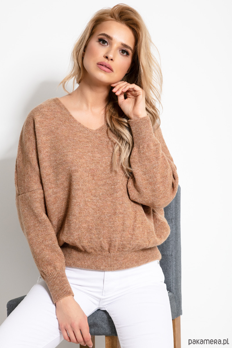 Sweterek z dekoltem w serek, wykoanny z niezwykle miekkiej dzianiny.