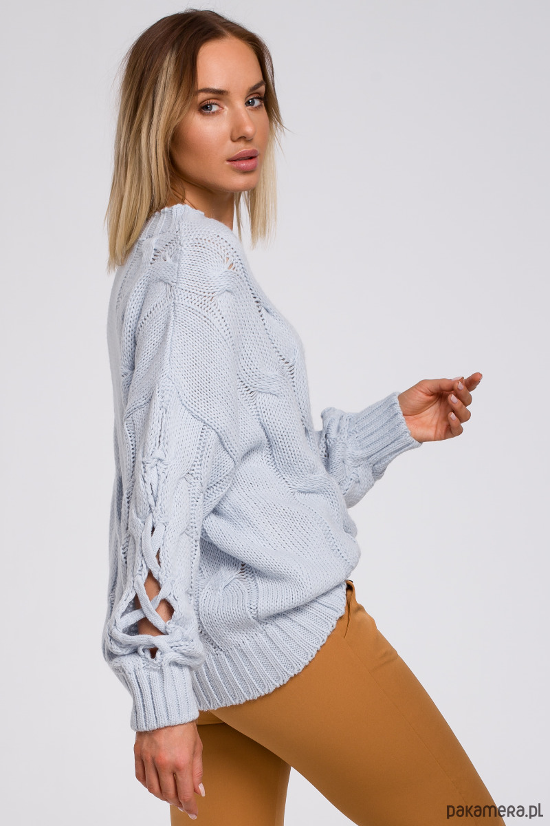 Ten oryginalny sweter ma wszystkie zalety ciepłego sweterka i wyjątkowy wygląd - rękawy z pęknięciami i ciekawymi przeplotami.