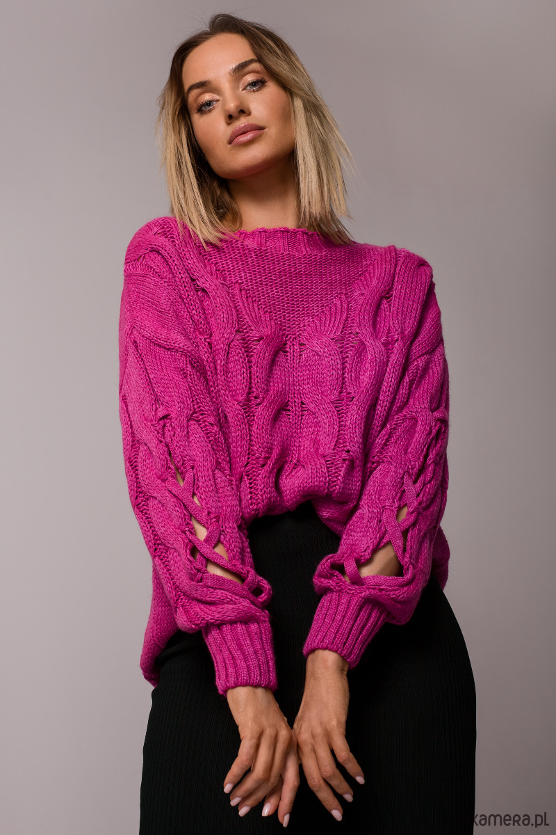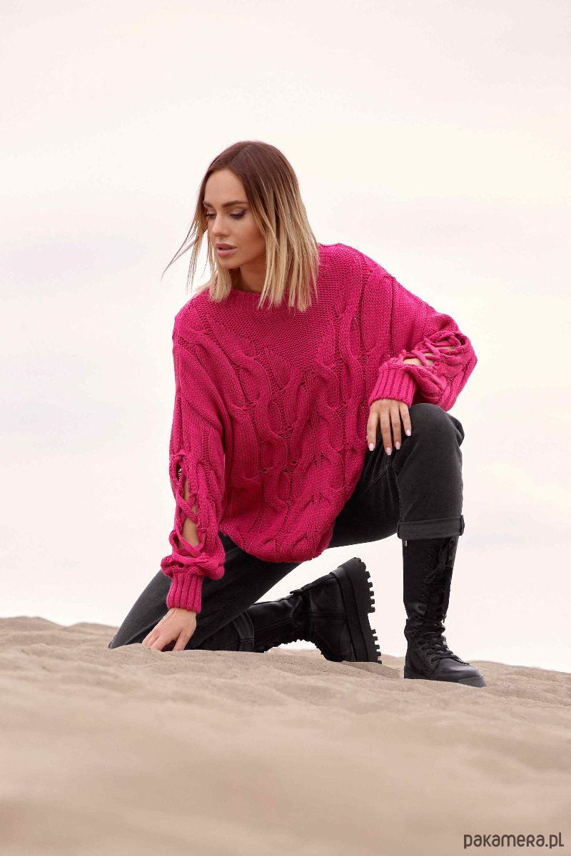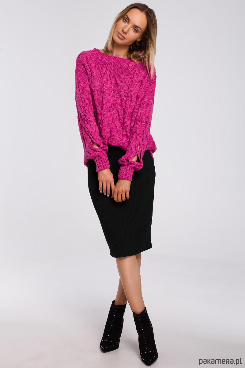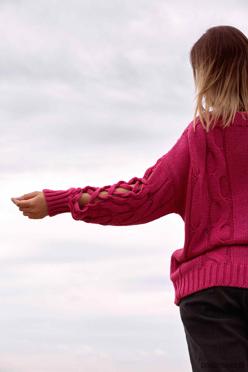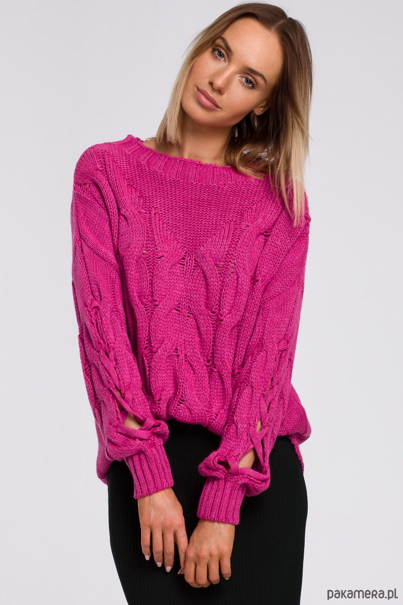 Ten oryginalny sweter ma wszystkie zalety ciepłego sweterka i wyjątkowy wygląd - rękawy z pęknięciami i ciekawymi przeplotami.