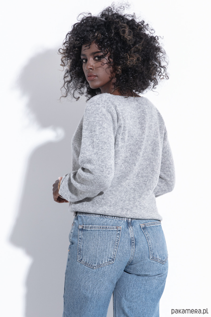 Klasyczny, wełniany sweterek z długimi rękawami. O prostym kroju, z okrągłym dekoltem wykończonym plisą, doskonale układa się na sylwetce. Prezentować świetnie będzie się w połączeniu z plisowaną spódnicą, jak również z jeansami. Po dodaniu różnych dodatków, np. biżuterii stworzysz niepowtarzalny look. Sweterek założysz do pracy, na spotkanie z przyjaciółmi czy na jakiś wyjazd.