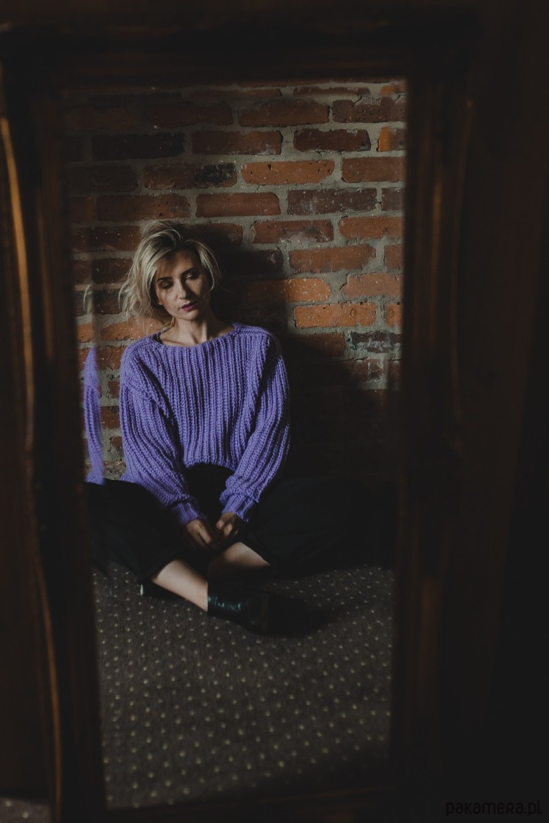 Wełniany, prosty w formie, luźny sweter. Wykonany z włoskiej przędzy z wełnami owczą oraz alpaki. Pochodzi z kolekcji Lavender.