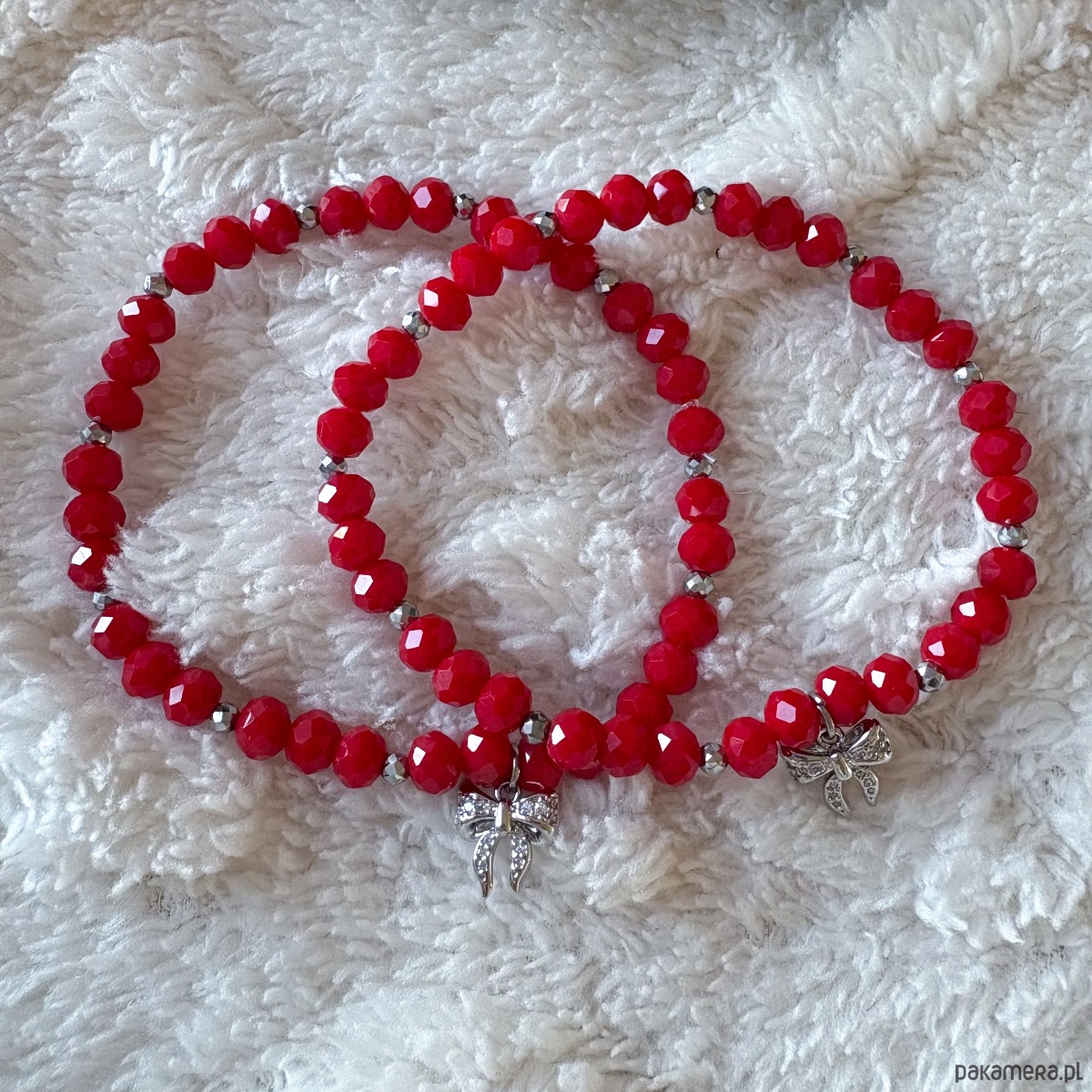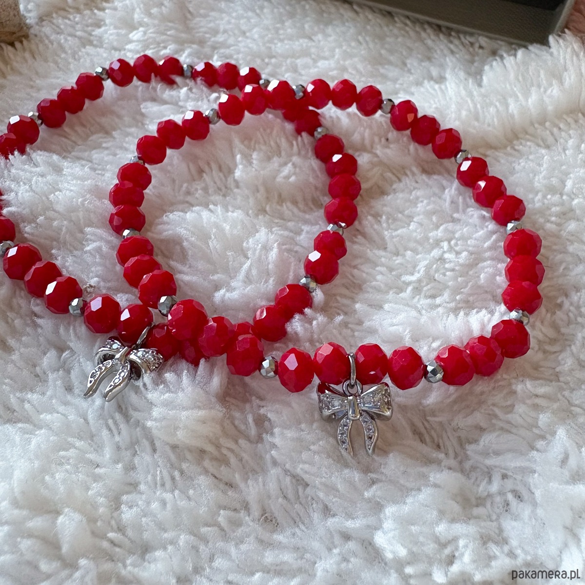 Świąteczna błyszcząca czerwona bransoletka z kokardką