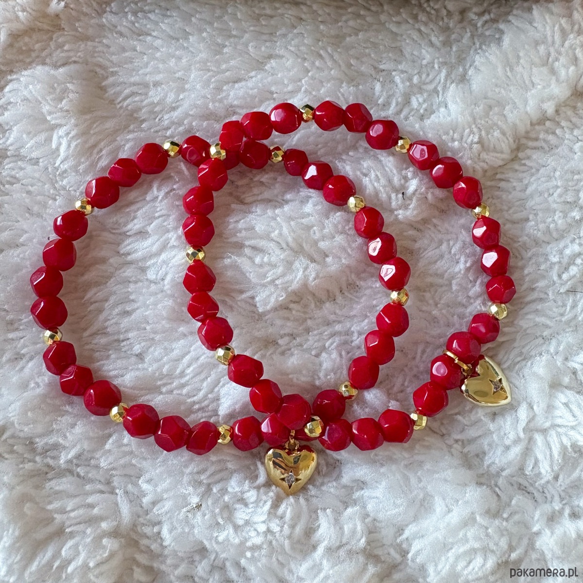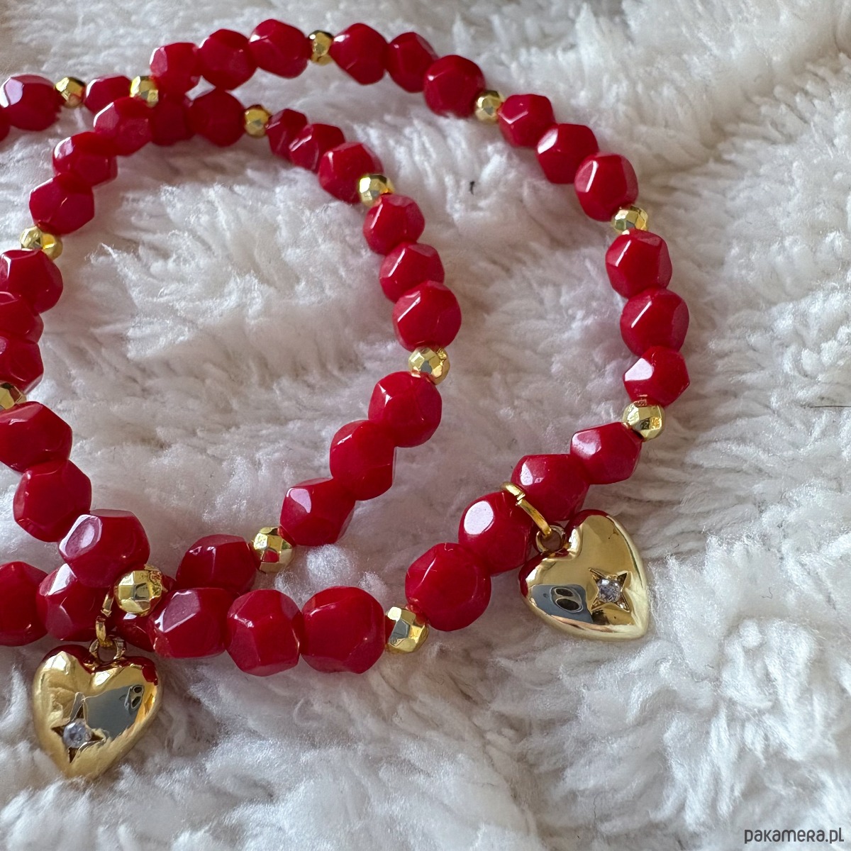 Świąteczna bransoletka z czerwonych korali z serduszkiem