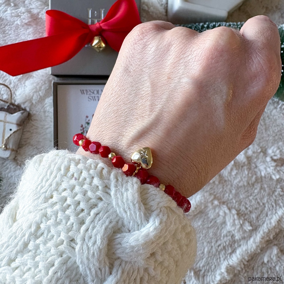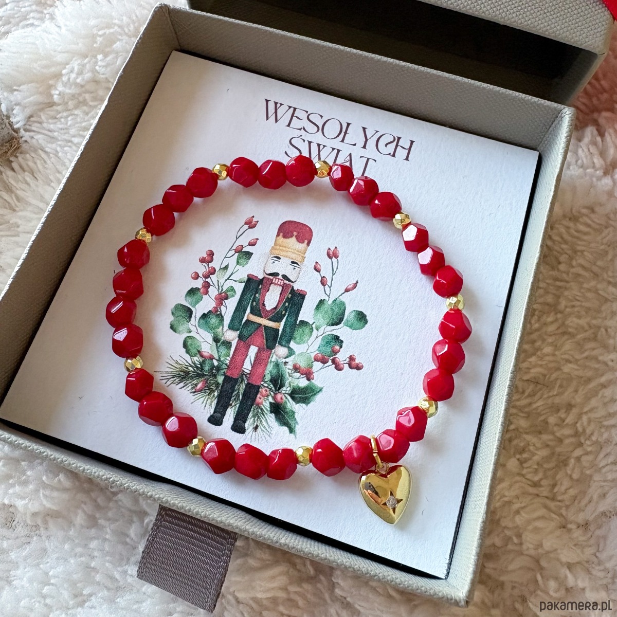 Poczuj ciepło świąt dzięki bransoletce, która łączy w sobie klasyczną czerwień, delikatny blask i urok symbolu serca. Czerwone korale przywołują magię świątecznego klimatu – radość, miłość i wyjątkową atmosferę grudniowych dni. Subtelne serduszko dodaje jej romantycznego, pełnego czułości charakteru, sprawiając, że staje się pięknym wyrazem bliskości. To niezwykle kobiecy i ponadczasowy dodatek, który idealnie uzupełni zimowe stylizacje – od codziennych po bardziej eleganckie. Bransoletka jest także doskonałym pomysłem na prezent: drobnym, symbolicznym i pełnym serca. Podaruj komuś bliskiemu odrobinę świątecznej magii zamkniętej w biżuterii, którą można nosić każdego dnia.