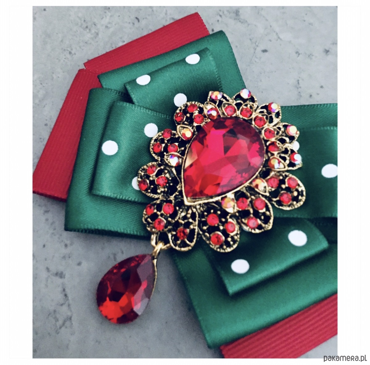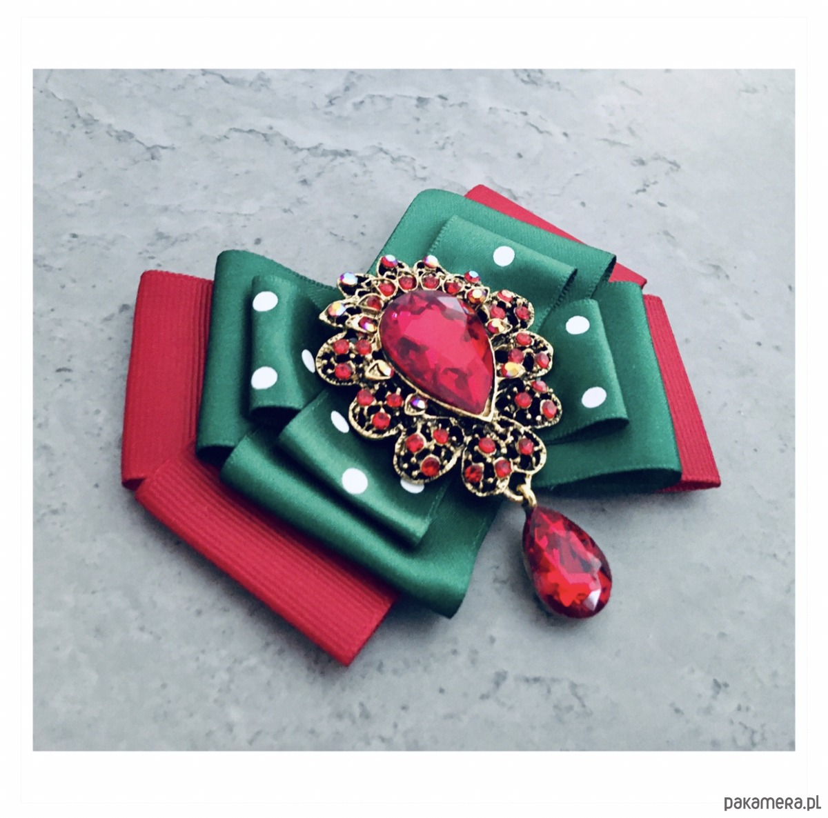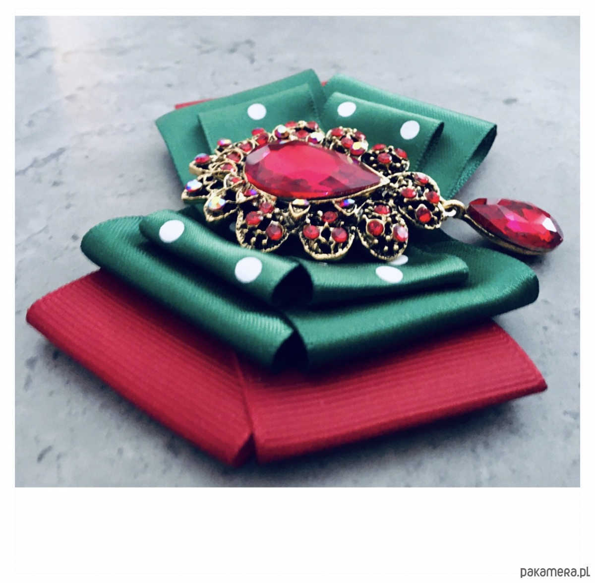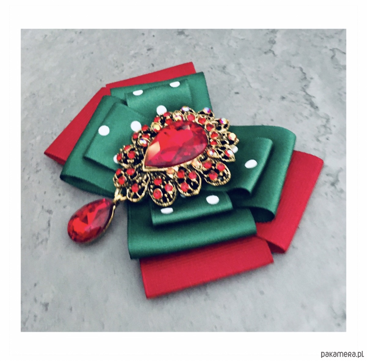 Broszka wykonana z wysokiej jakości taśm i dodatków.