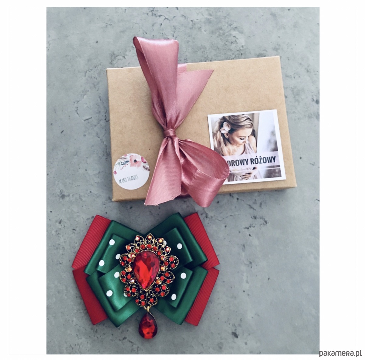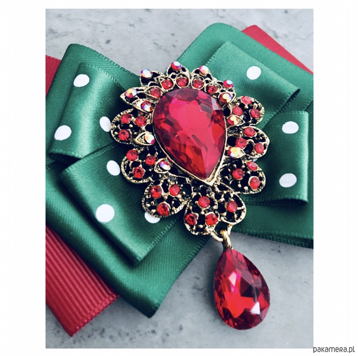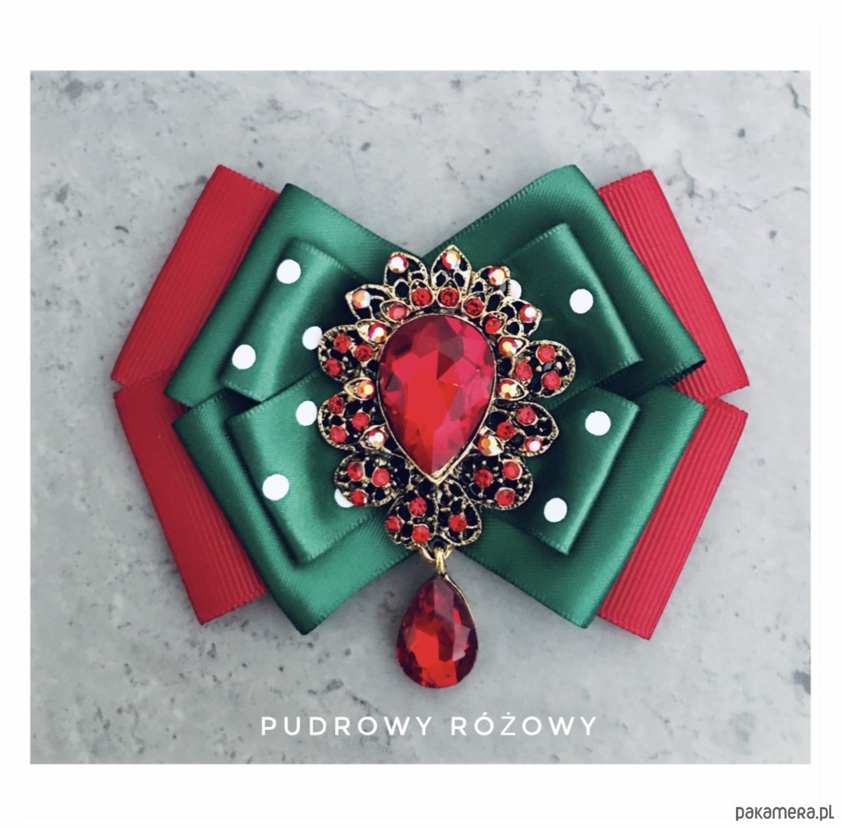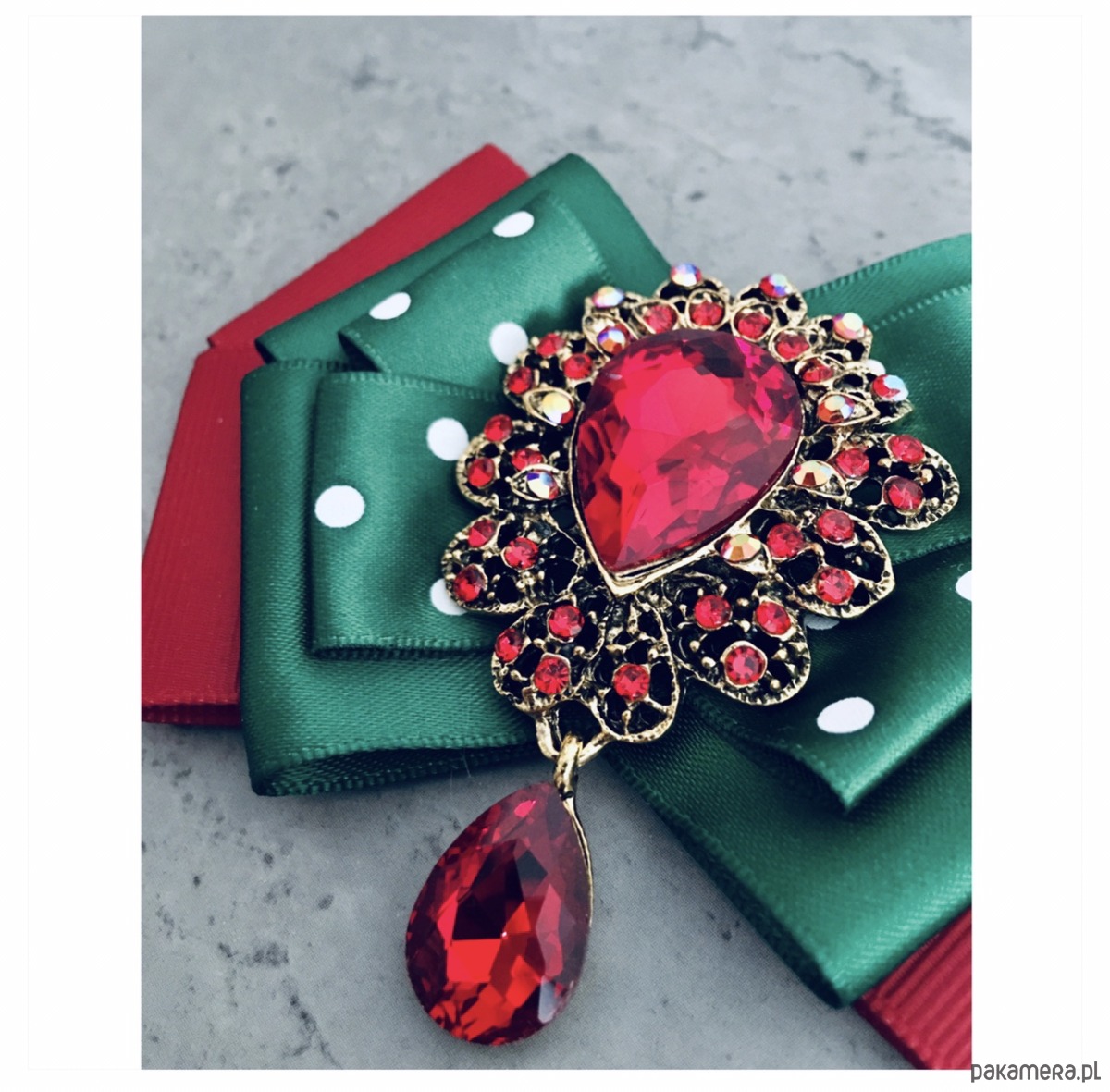Broszka wykonana z wysokiej jakości taśm i dodatków.