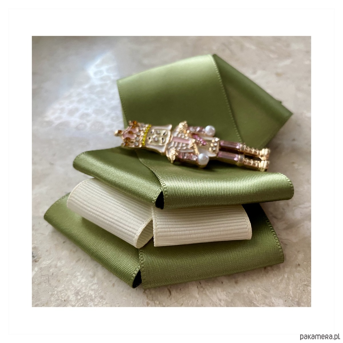 Broszka wykonana z wysokiej jakości taśm i dodatków.