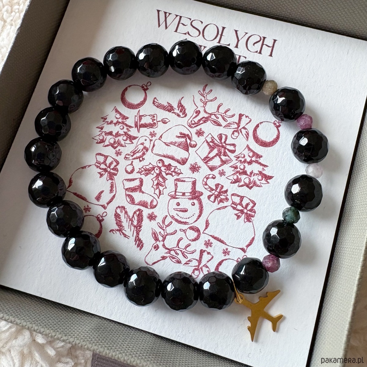 Świąteczna elegancka bransoletka z agatów i turmalinów