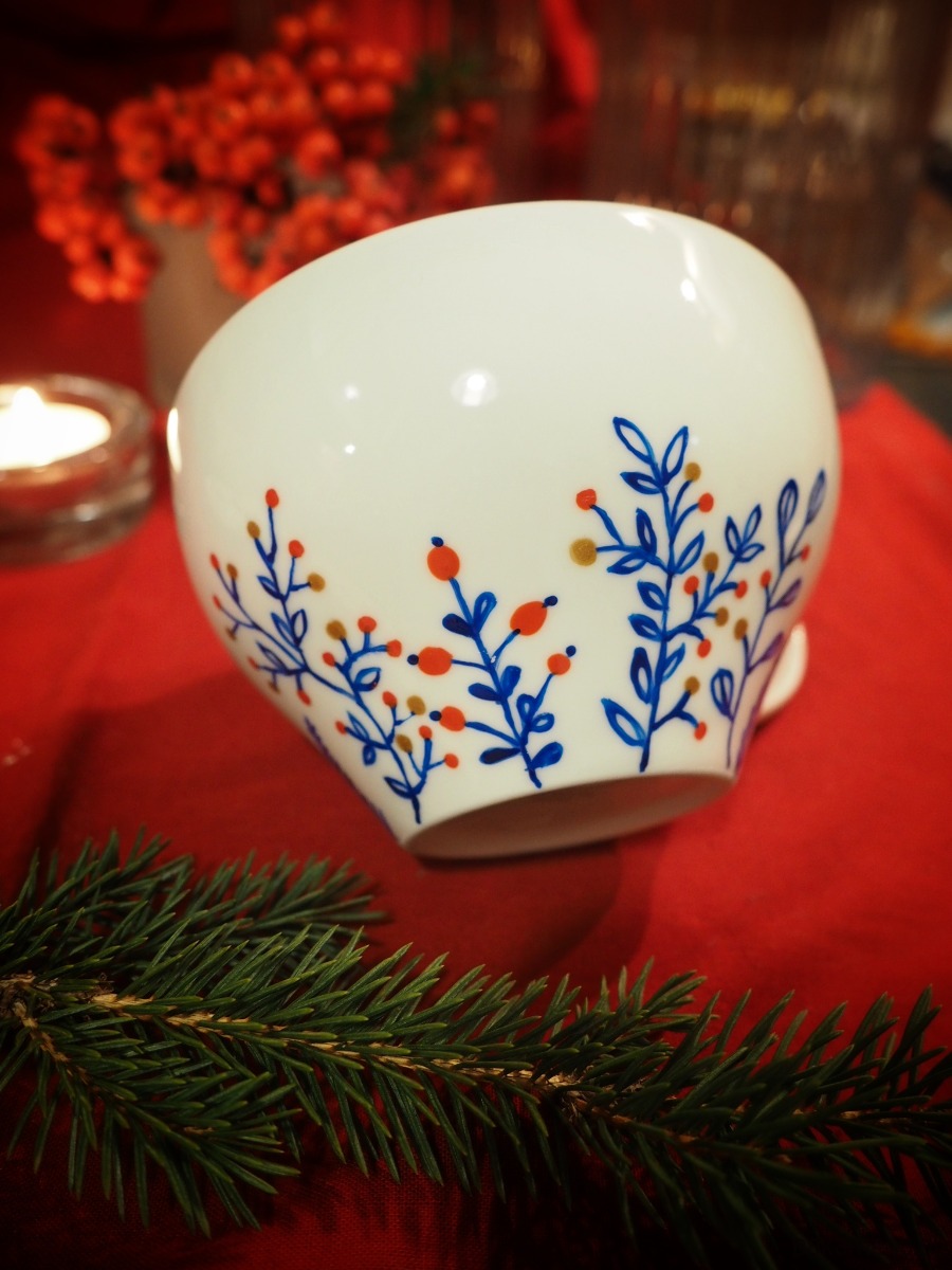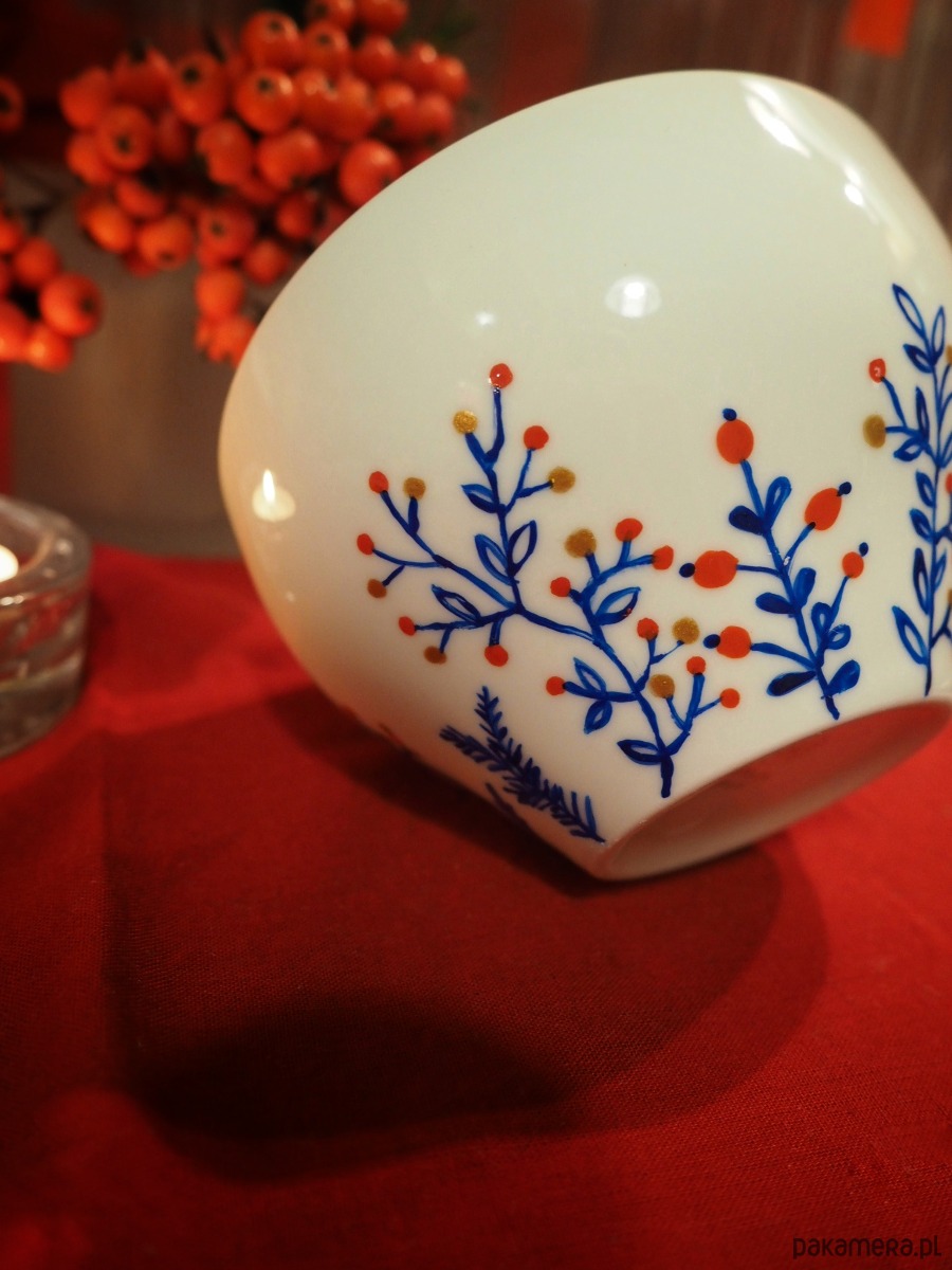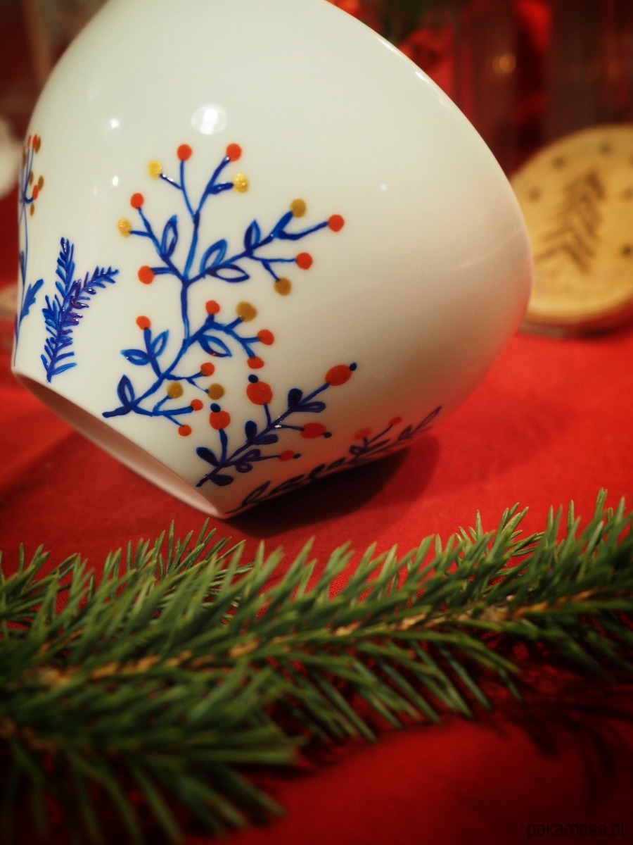 Wzór w stylu skandynawskim wykonany został przy użyciu nietoksycznych farb do porcelany, jest wodoodporny - naczynie może być myte ręcznie, bez użycia ostrych narzędzi.
