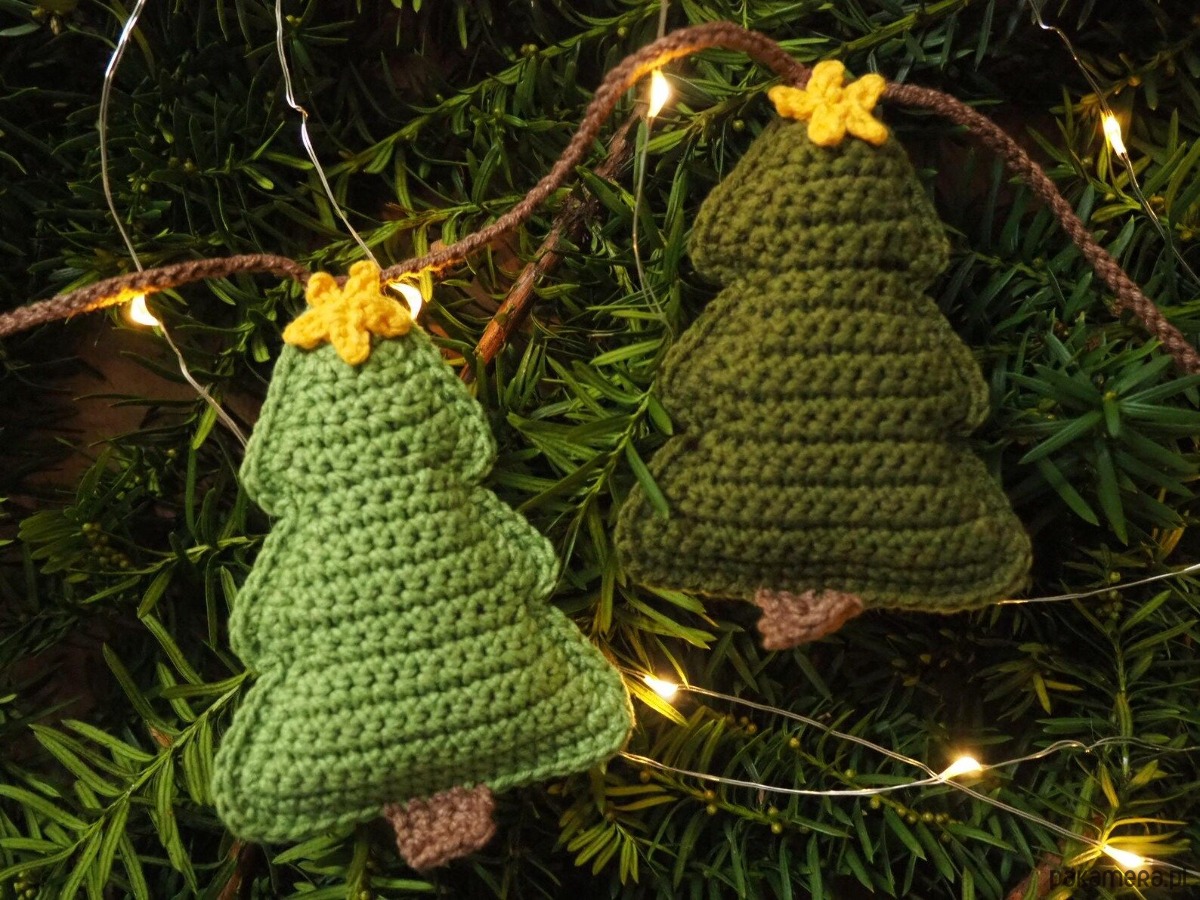Składa się z siedmiu szydełkowych choinek ozdobionych gwiazdkami, wykonana z dwóch kolorów zielonej włóczki.