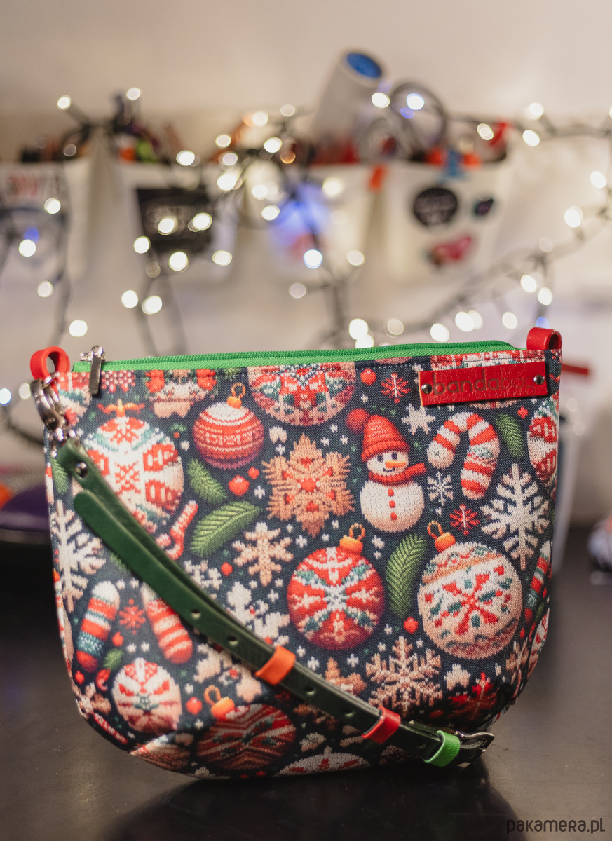 ŚWIĄTECZNA to ręcznie robiona torebka. Wykonana z solidnej, kolorowej, wodoodpornej tkaniny.