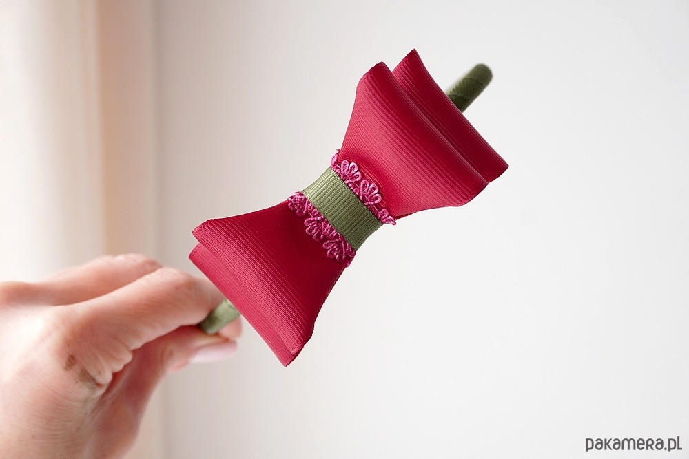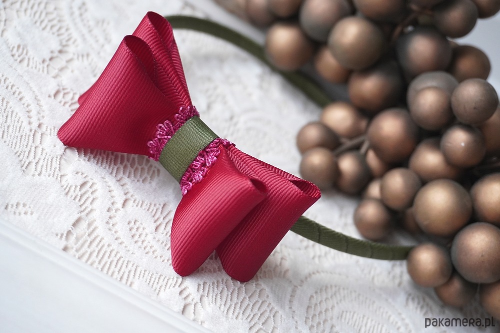 Świąteczna opaska do włosów kokarda bordowa ŚDW163