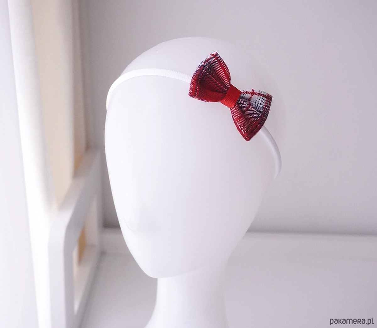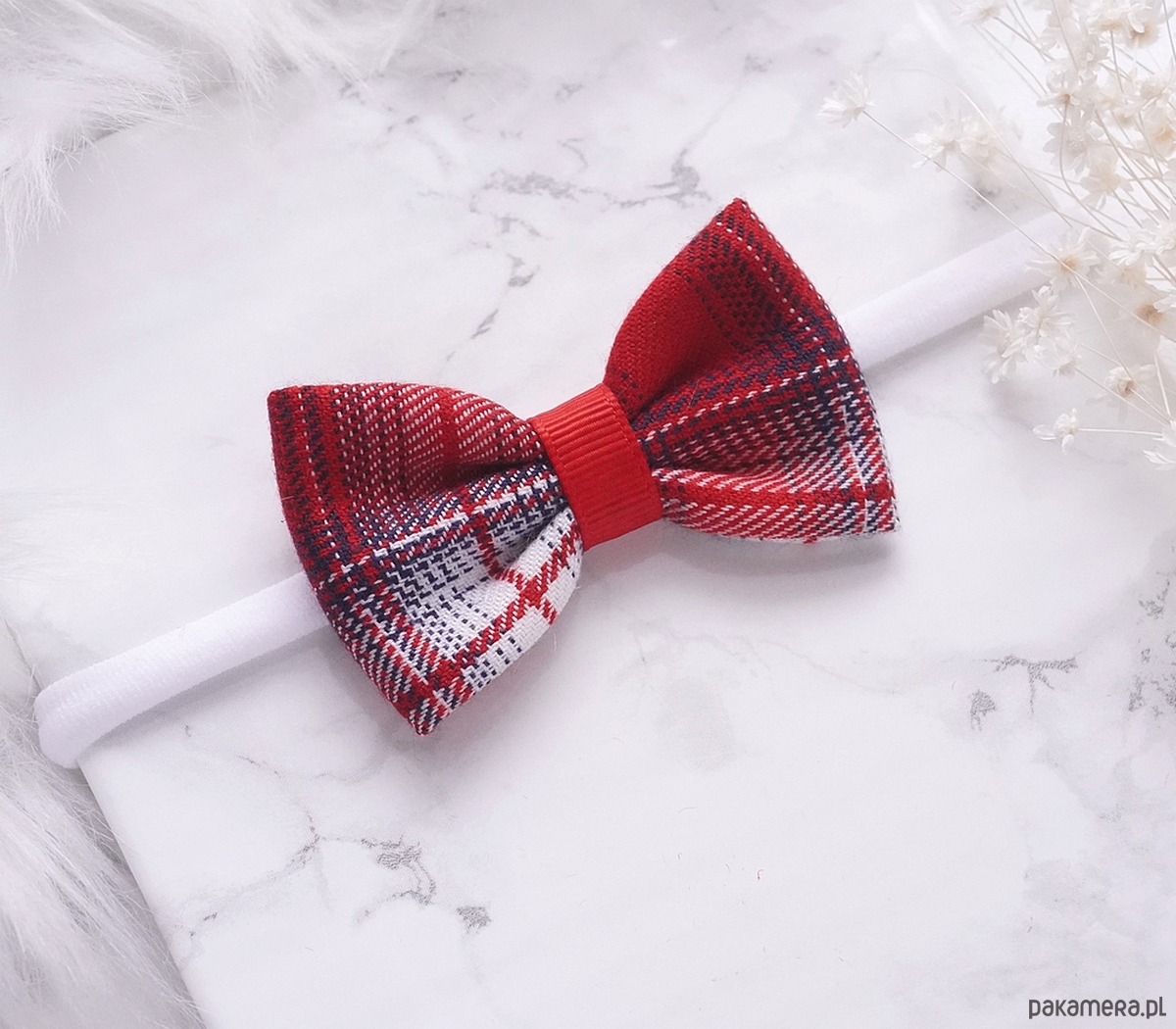 Świąteczna opaska dla niemowląt kokarda czerwona kratka SANTA SK32