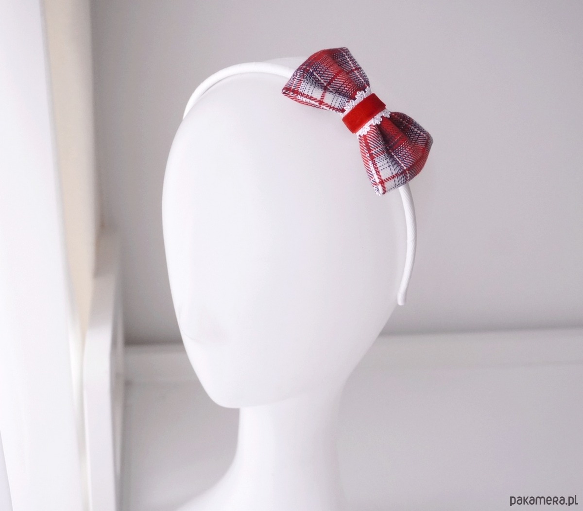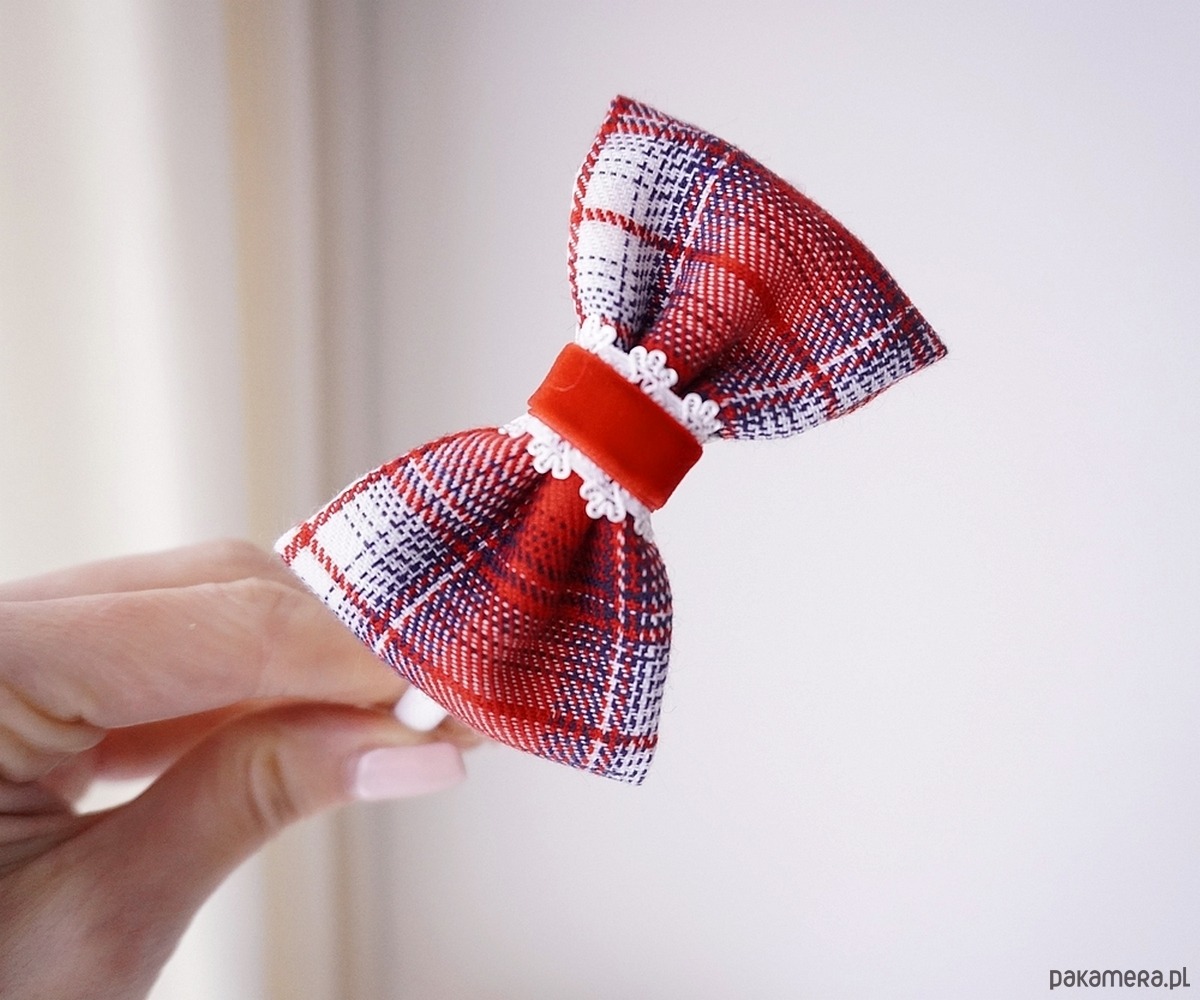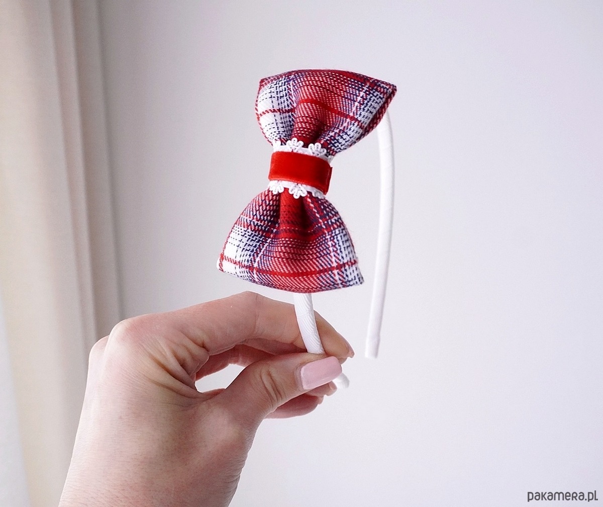 Świąteczna opaska do włosów kokarda czerwona kratka SANTA SK26