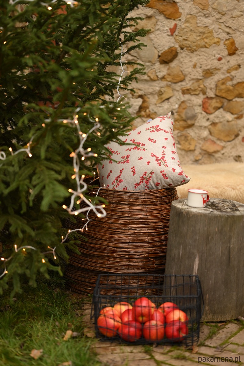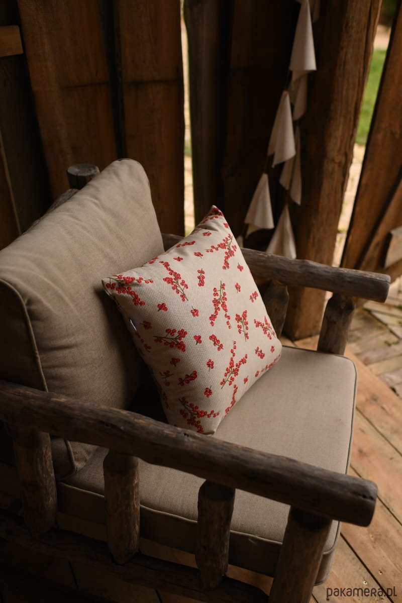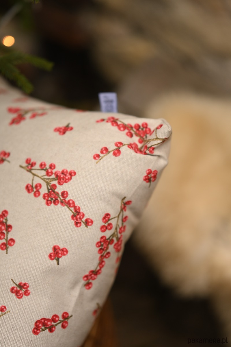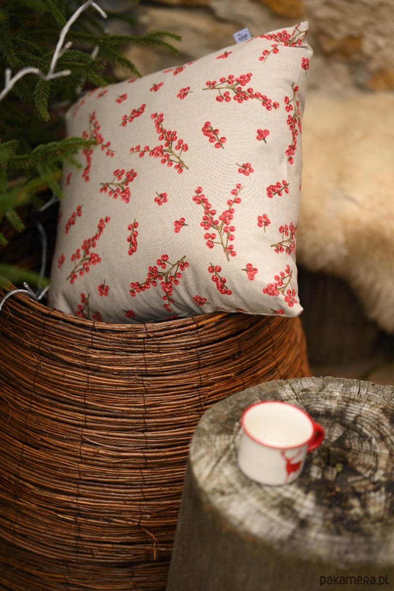 Świąteczna poszewka na poduszkę z motywem głogu