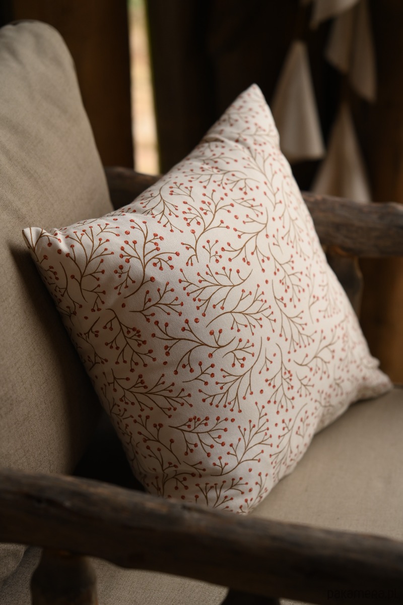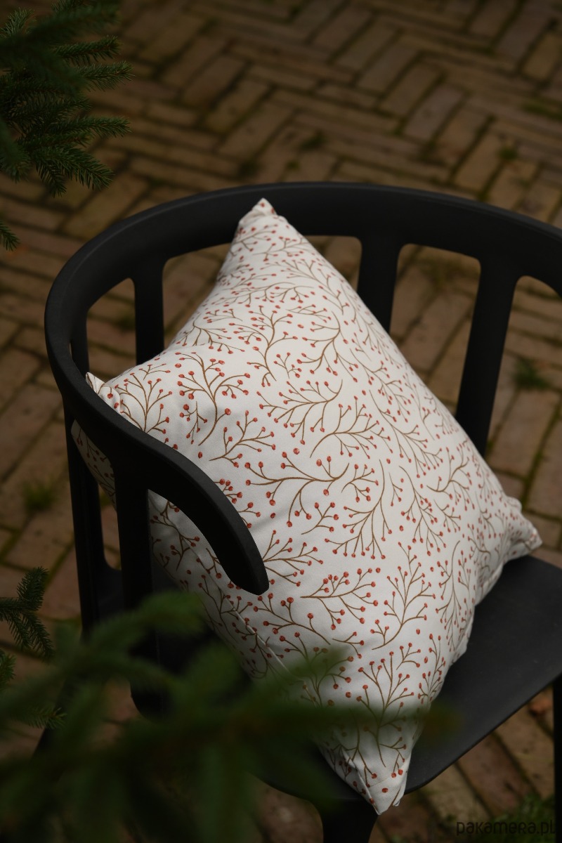Świąteczna poszewka na poduszkę z motywem jarzębiny