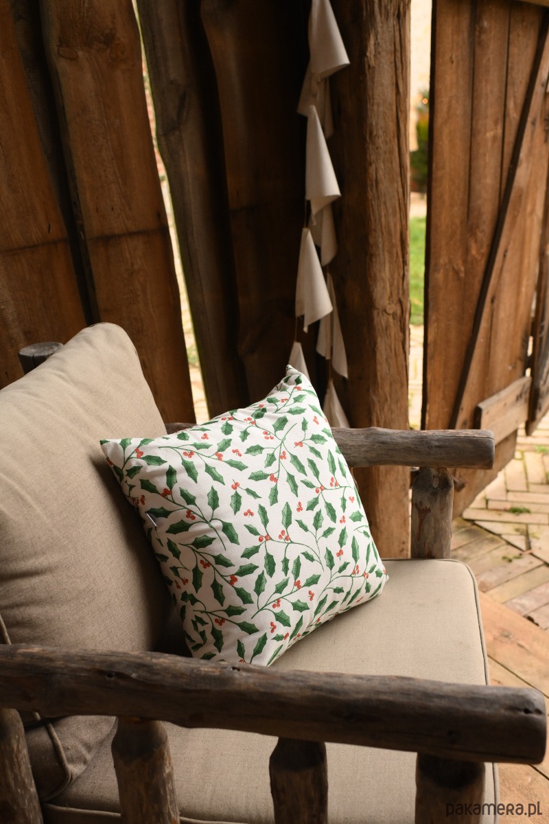 Świąteczna poszewka na poduszkę z motywem ostrokrzewu