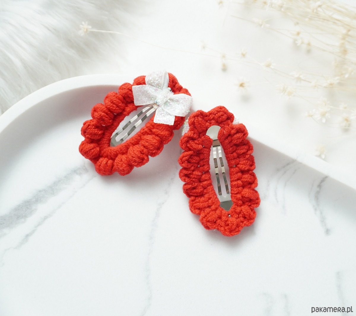 Przepiękne spinki zostały zrobione metodą szydełkową.