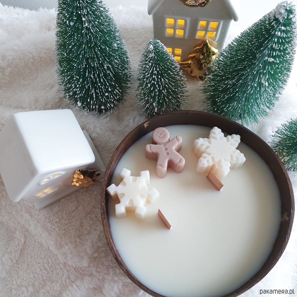 ŚWIĄTECZNA ŚWIECA ZAPACHOWA W ŁUPINIE KOKOSA –  BAWEŁNA