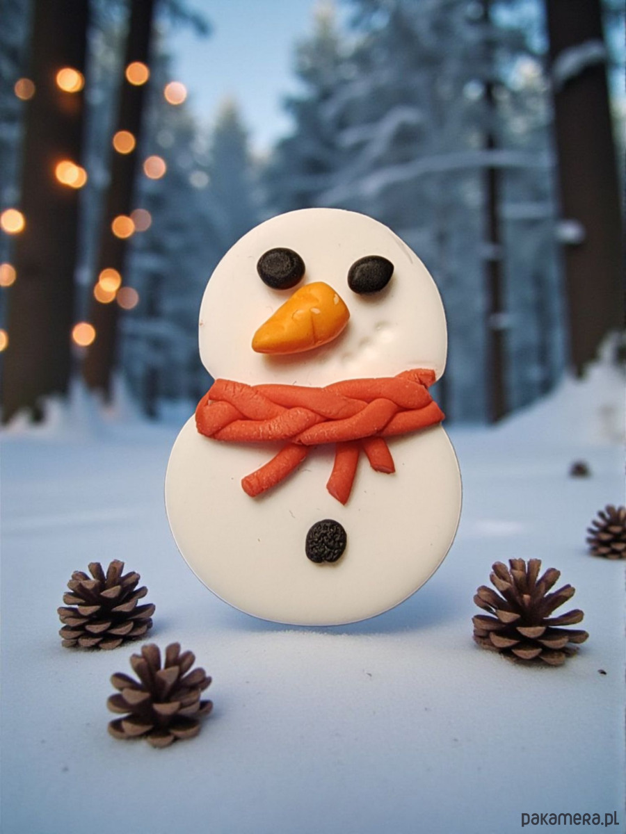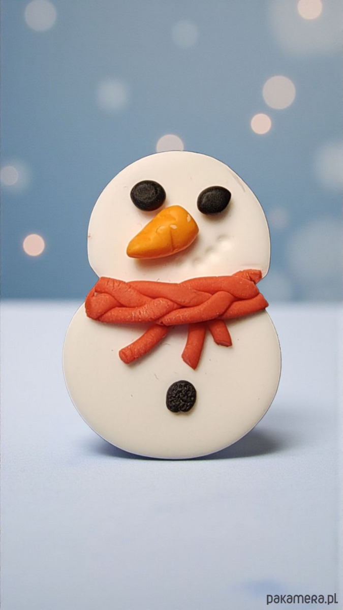 Ta urocza broszka w kształcie bałwanka została wykonane ręcznie z glinki polimerowe.