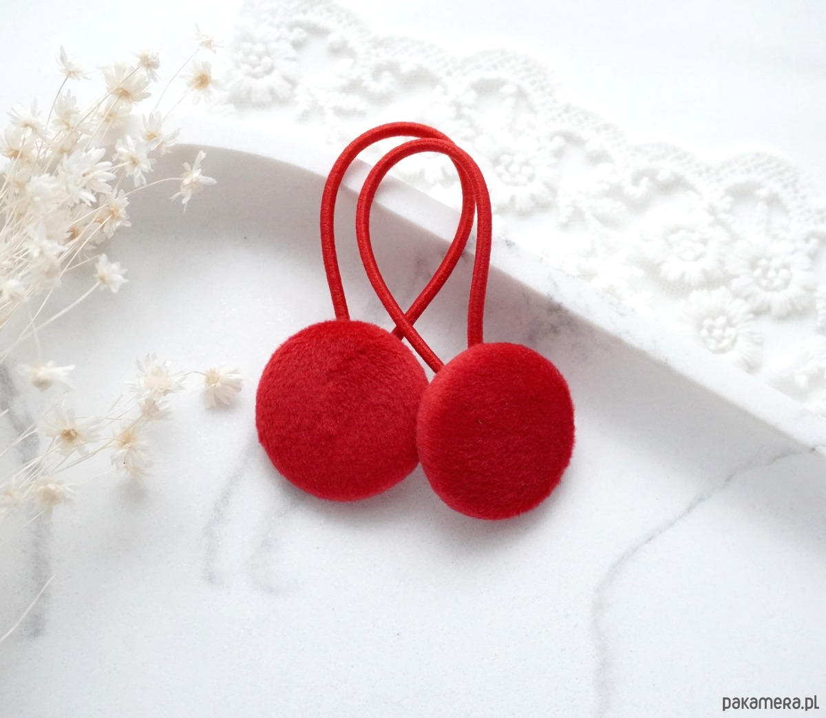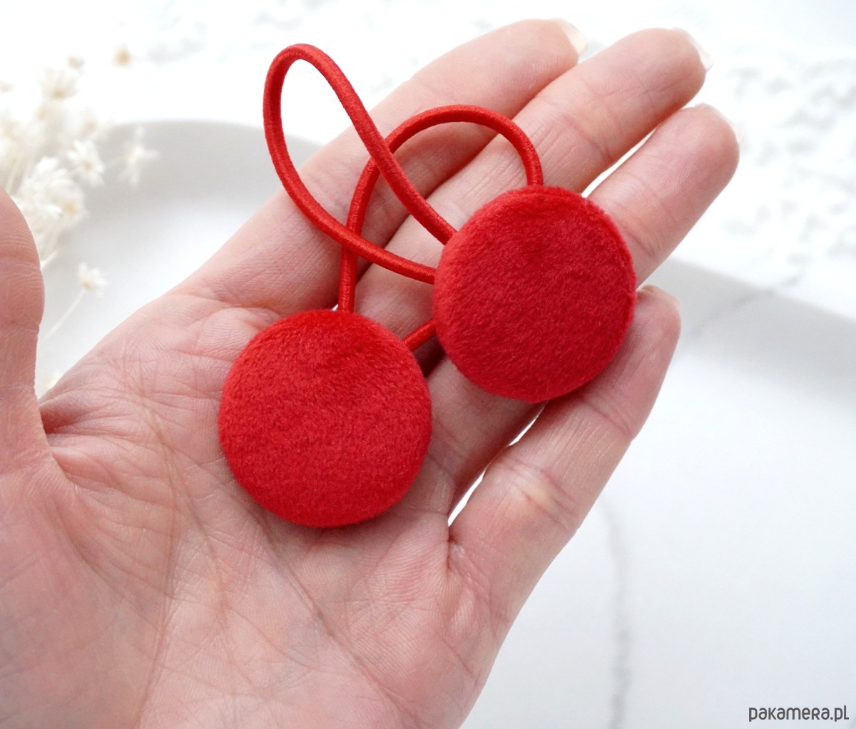 Świąteczne czerwone gumki do włosów dla dziewczynki WELUROWE SK33
