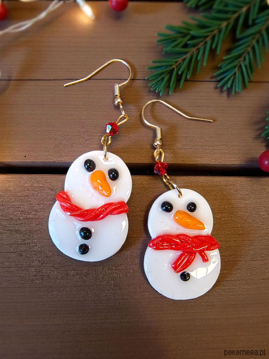 Świąteczne kolczyki bałwanek handmade
