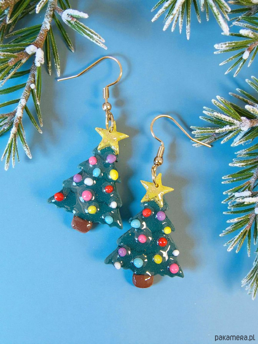 Te urocze kolczyki w kształcie choinek zostały wykonane ręcznie z glinki polimerowej, tylko jeden egzemplarz.